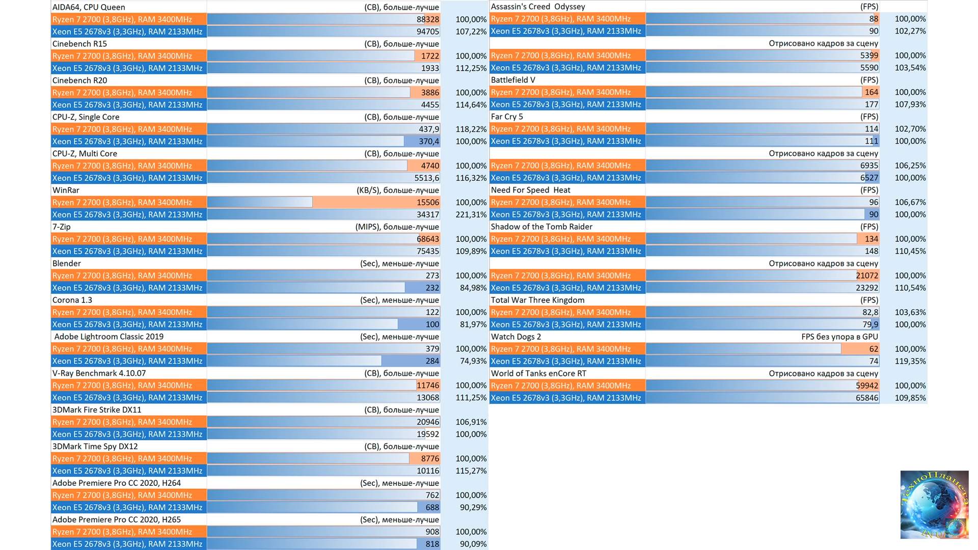 А, это тут раньше уже кто-то обратил внимание, что в этих многоядерных процессорах v2 немного как раз отличается архитектура, там пара контроллеров памяти, и бла-бла бла, из-за чего скорости кэша и обмена с памятью у них выше, как у 2678v3, отсюда и увеличение производительности на ядро. Проблема в том, что процессоры эти все же сильно медленные, стоят дороже 2678v3.