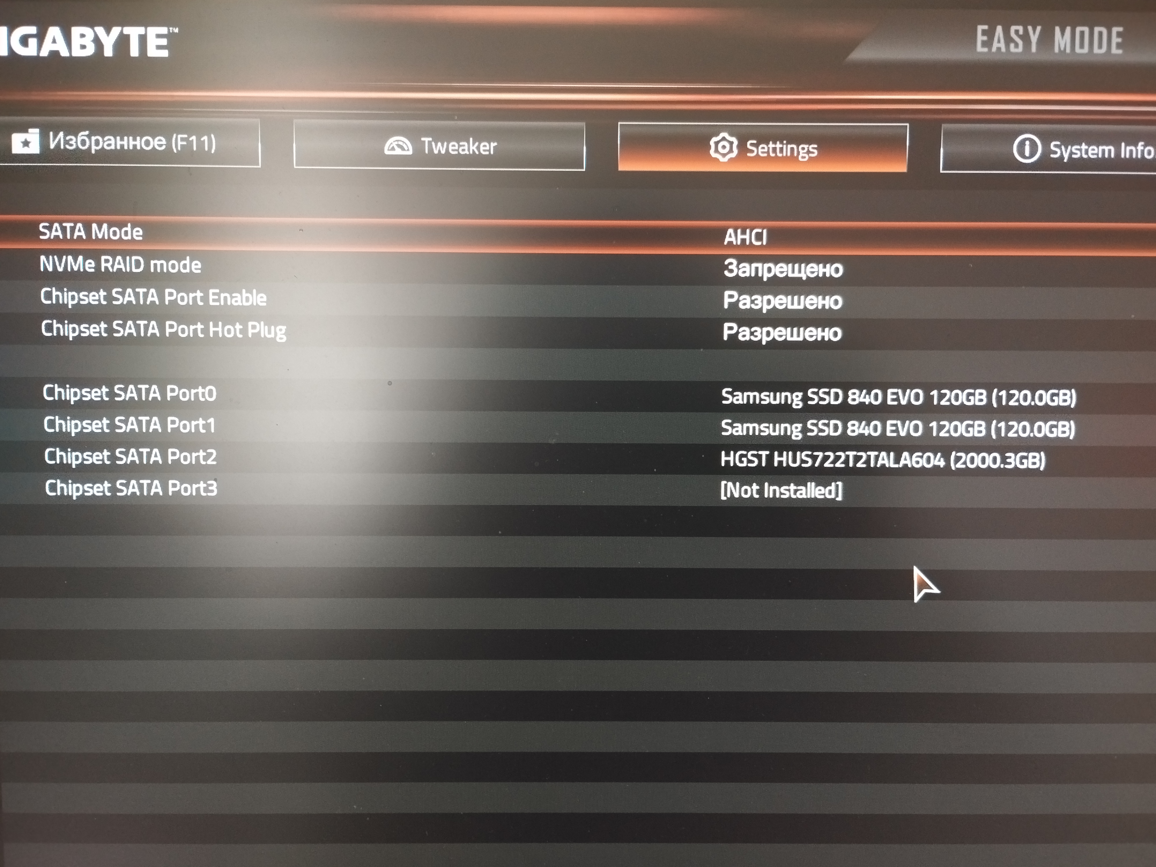 Ты делал сохранение с перезагрузкой после переключения режима на рэйд? Верни английский язык и больше НИКОГДА не переключай ни на какой другой в таких ответственных местах как биос.
