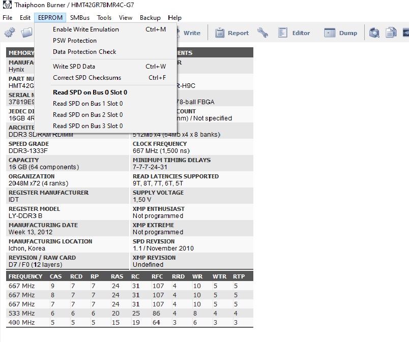 У кого есть лицензия Thaiphoon ? кто не будь пробовал прошивать память Ecc Reg ? обычную прошивает Dimm, серверную не как т.е добавляет частоты , нажимаю прошить добавилось но через 3 сек обратно меняет и убирает настройку (самого процесса прошивки нет )!