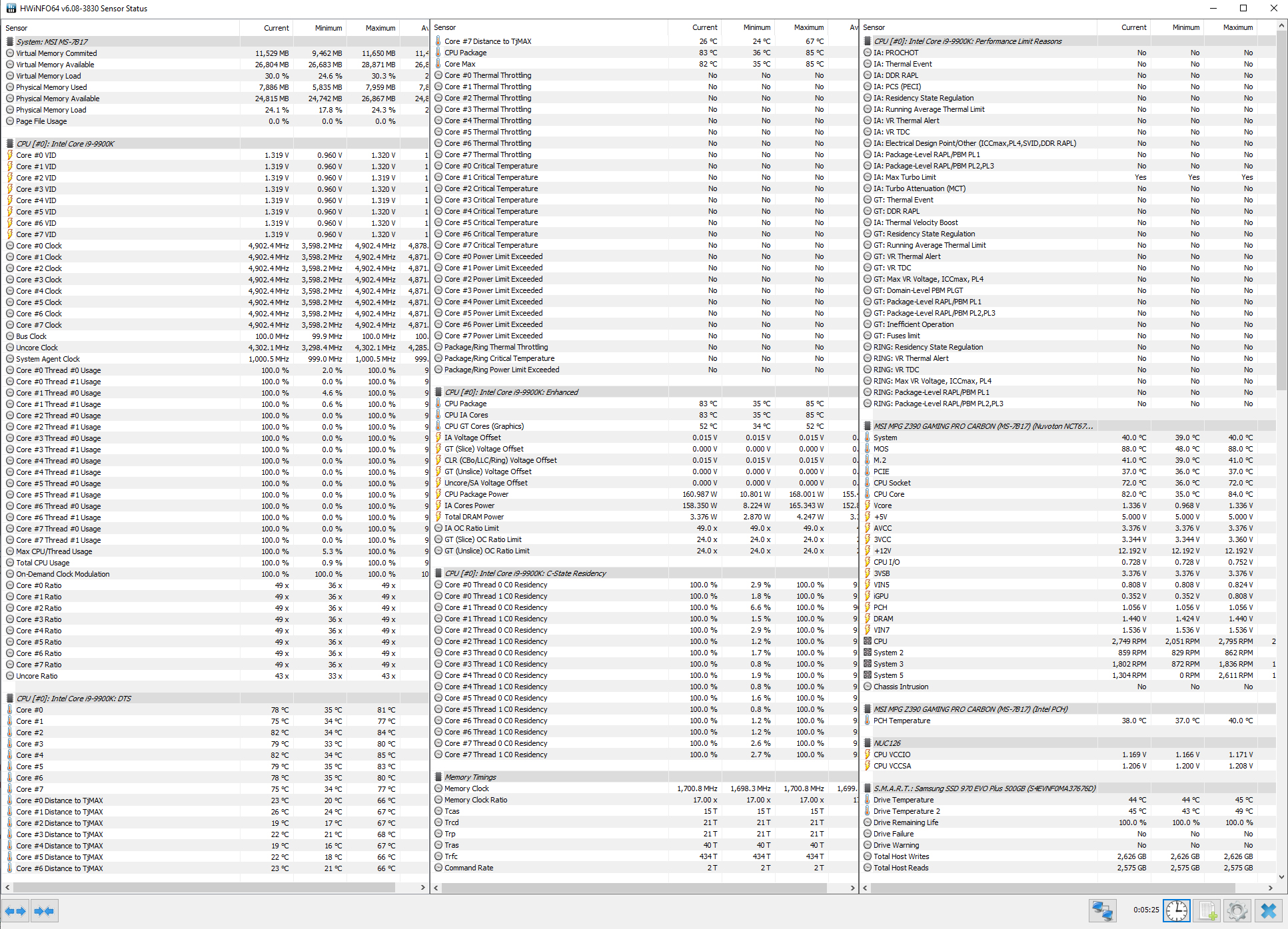 Inttz Заодно качество термопрокладки проверь под радиатором VRM. У меня такая же материнка: процессор 8700К без разгона (4300 МГц) и без нагрузки выше 40 не нагревает, в комнате температура чуть выше 20 градусов.