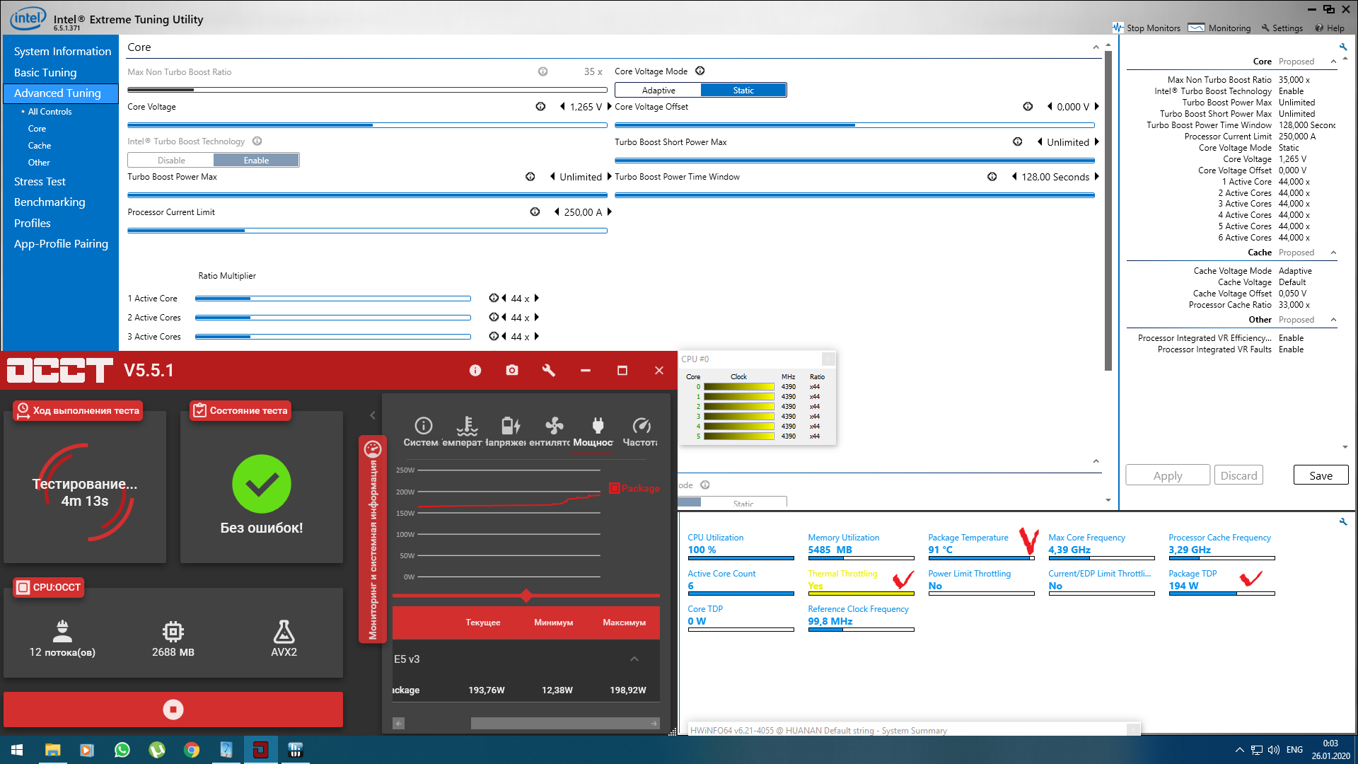 обхода теплового пакета в avx и avx2 тестах