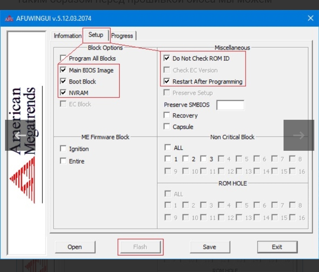 Рекомендуемая программа для прошивки BIOS - FPT, желательно из под DOS, что бы избежать проблем с OS, например, зависания во время прошивки. Можно также использовать программы со встроеным FPT, например, тот же S3TurboTool от ser8989. Касательно AFUDOS и AFUWIN, то рекомендую их использовать только на платах где нет возможности прошить BIOS с помощью FPT, поскольку есть большие сомнение, что они нормально прошивают ME регион на Apito 5 даже с ключем /gan