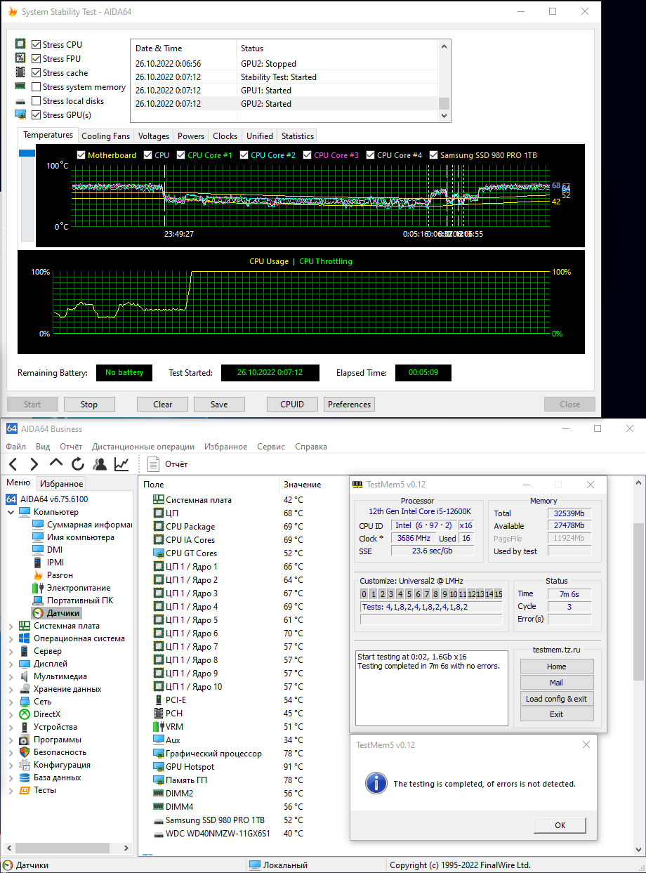 Тест Anta777_absolut очень долгий. Все еще 1-й цикл длится (без ошибок). Уже 46 мин. Возможно, смогу выложить результат, только, спустя 8-10 ч, вместе с остальными. ПК будет нужен.