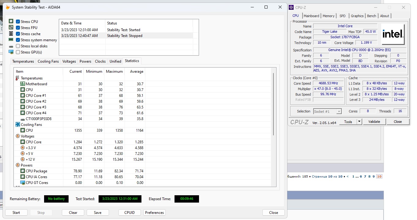 Что-то у Вас там странное. Тест в AIDA остановлен, а процессор по-прежнему потребляет 79 Вт. Чем он занят?