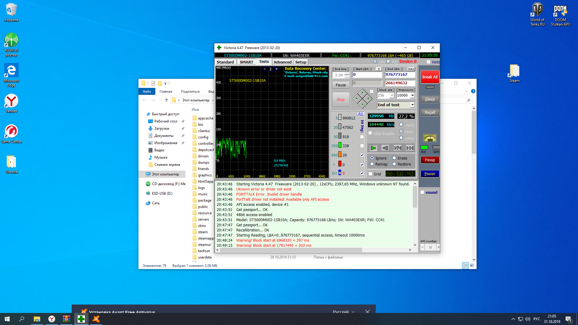 Всем привет! Столкнулся с очень досадной проблемой. Дело было так: в один прекрасный вечер, мой диск (ссд патриот бюрст) начал долбиться в 100 процентов без ведомой на то нагрузки (0.1/0.2 мб. сек). Сразу начал думать на виндовс или вирусы. Переустановки винды и отключения служб винды, которые могут грузит диск, проблема не пропала. Я поставил свой старый вд блю, на 320 гигов, а ссд сдал по гарантии. В итоге, через пару дней с ним началась такая же проблема. Самое забавное, что это было только в играх, в остальных же программах все было хорошо. Спустя еще пару дней, шиндовс на нем приказал долго жить. Ну чтож, подумал я, и взял у знакомого сигейт на 500гб. Первое время с ним тоже все было нормально, но вот опять в играх нагрузка на 100 процентов. При нагрузке на диск в 0.1/0.2 мб Дрова на чипсет ставил, не помогло. Мать - китайская, под 1356 сокет. Шлейфы тоже менял. На бп тоже не грешу, стоит биквайт систем повер 9 на 600 ватт. По итогу, я бы хотел попросить помощи у местных форумчан по этой проблеме. Был бы очень рад и признателен.