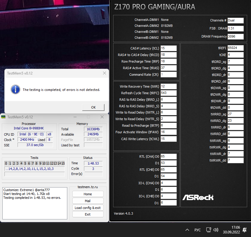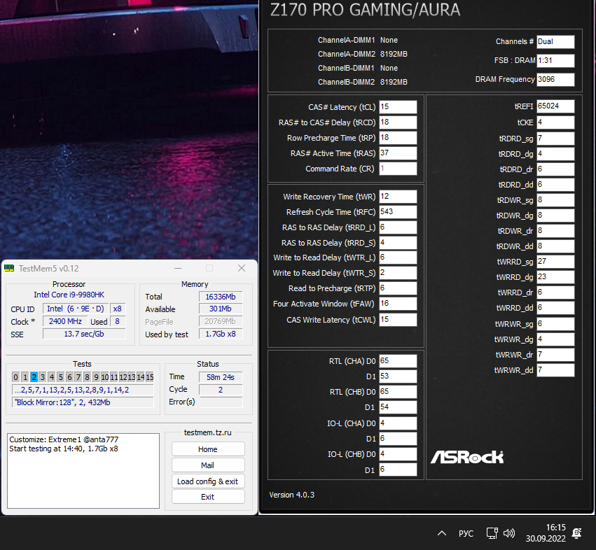 и загружаю профиль (ОЗУ 3100) 100% рабочий который проходил экстрим режим без ошибок