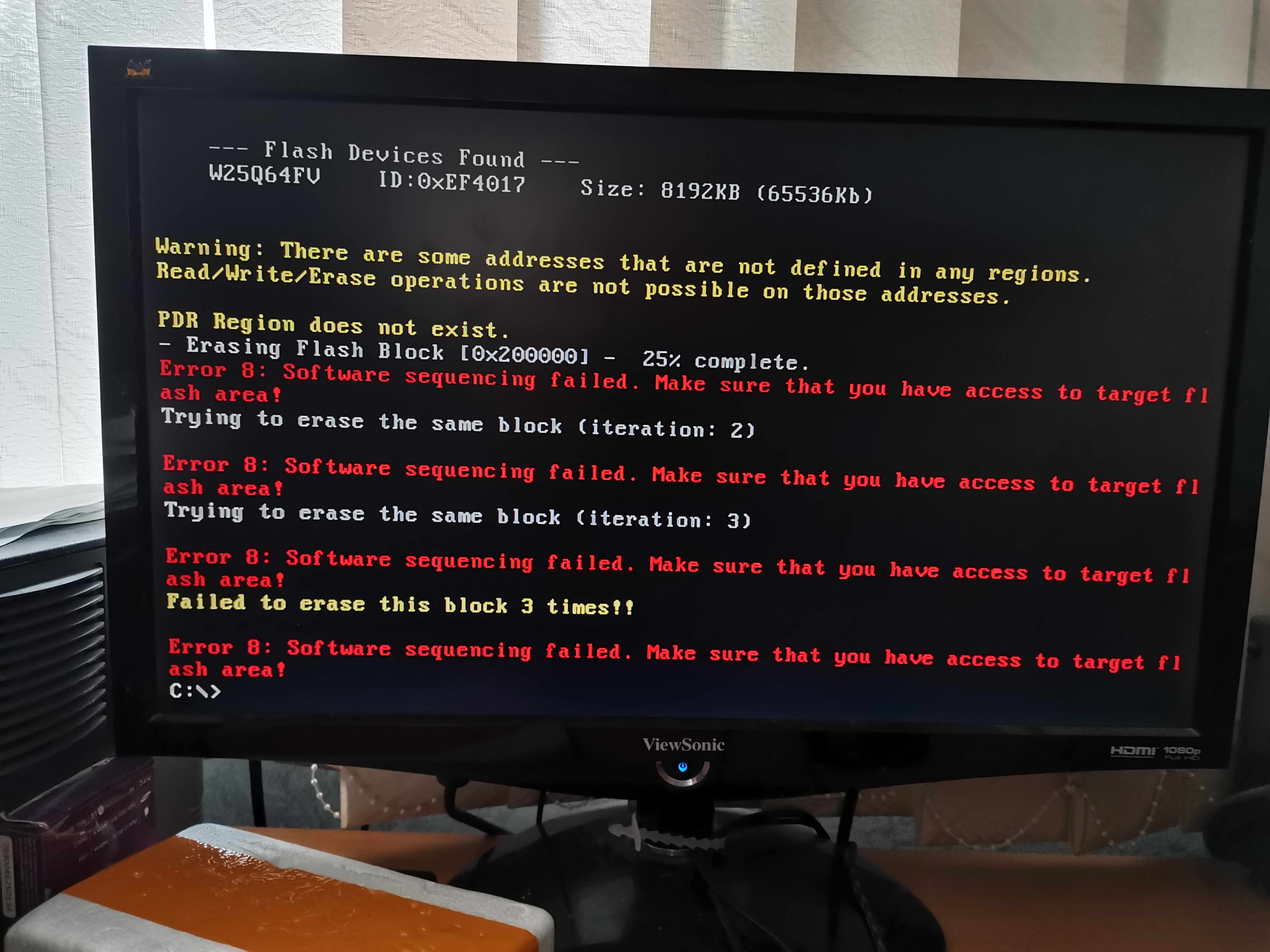 При попытке прошиться через FPT выдаёт ошибку Error 7: Hardware sequencing failed. Make sure that you have access to target flash area!