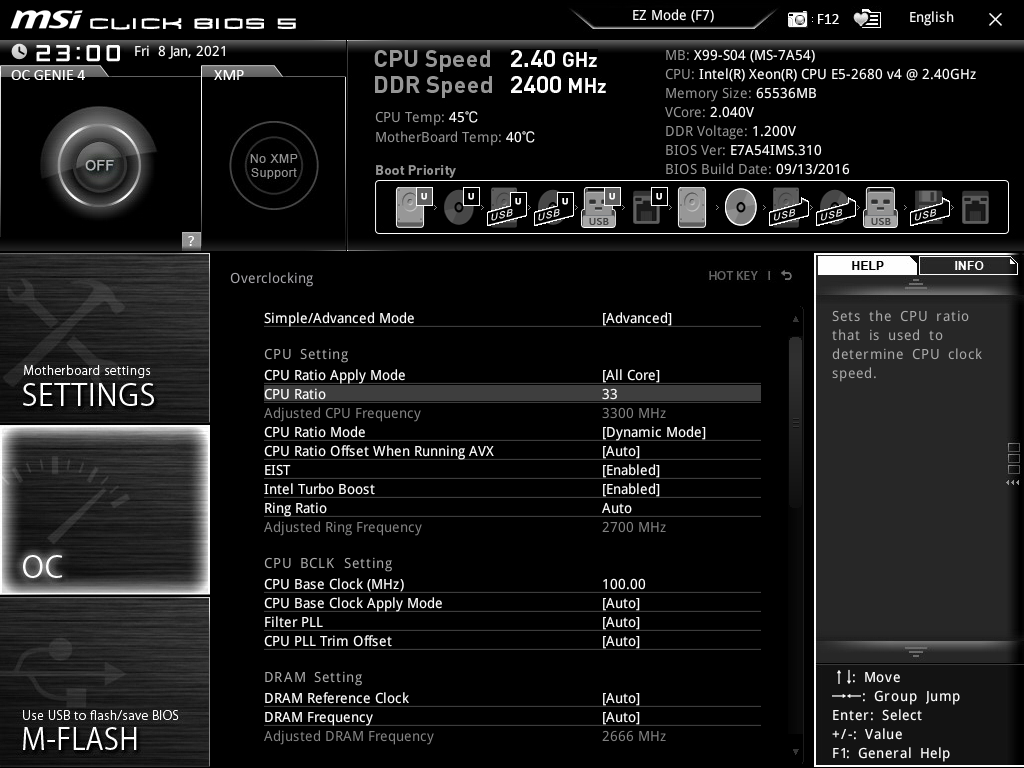 Прошу помочь неопытному в решении проблемы. Хочу разогнать процессор Xeon 2680 v2. На плате Huanan x79 rev 2.49 шью биос Afudos'ом, версия биоса rev2.49 c204 Cpu & Ram patch 06-28-2017 14-19-20 (даты совпадают с материнкой). Но пункты разгона в биосе не появляются. Что я делаю не так подскажите пожалуйста? Спасибо!