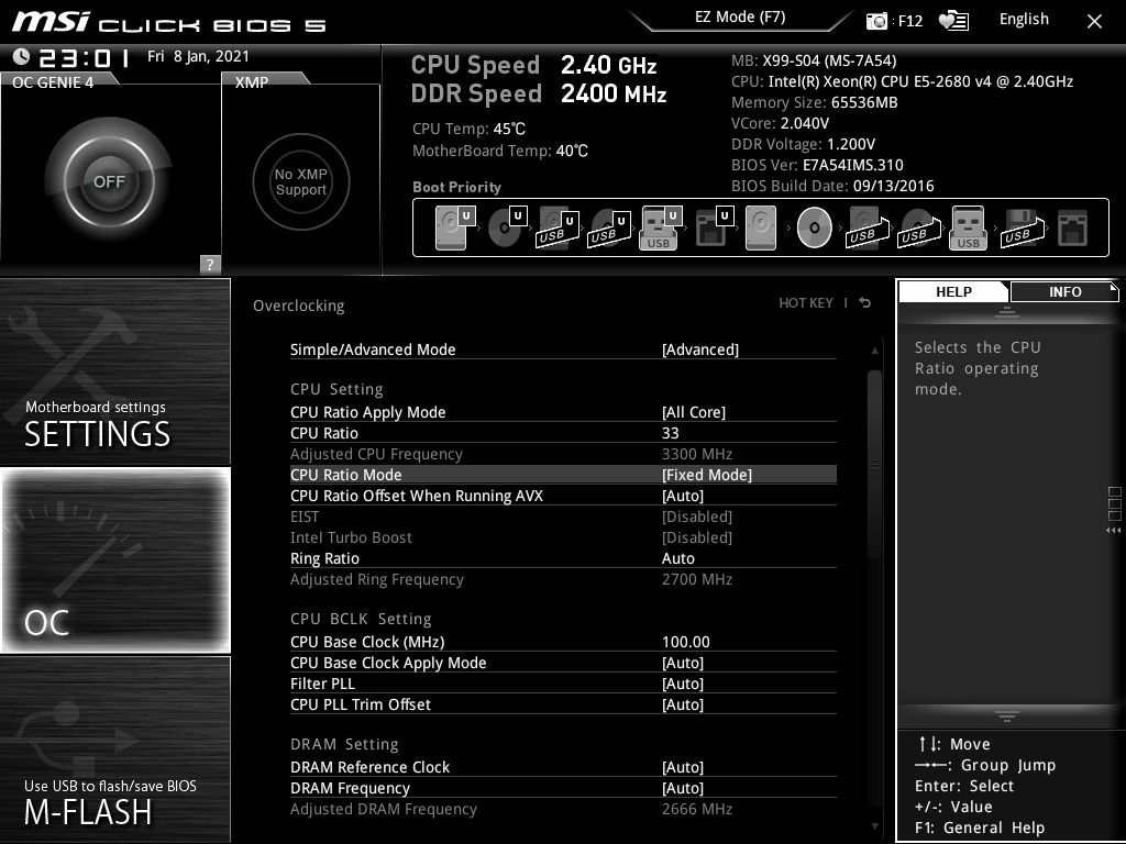 Добрый вечер уважаемы оверклокеры. Прошу помочь неопытному в решении проблемы. Хочу разогнать процессор Xeon 2680 v2. На плате Huanan x79 rev 2.49 шью биос Afudos'ом, версия биоса rev2.49 c204 Cpu & Ram patch 06-28-2017 14-19-20 (даты совпадают с материнкой). Но пункты разгона в биосе не появляются. Что я делаю не так подскажите пожалуйста? Спасибо!