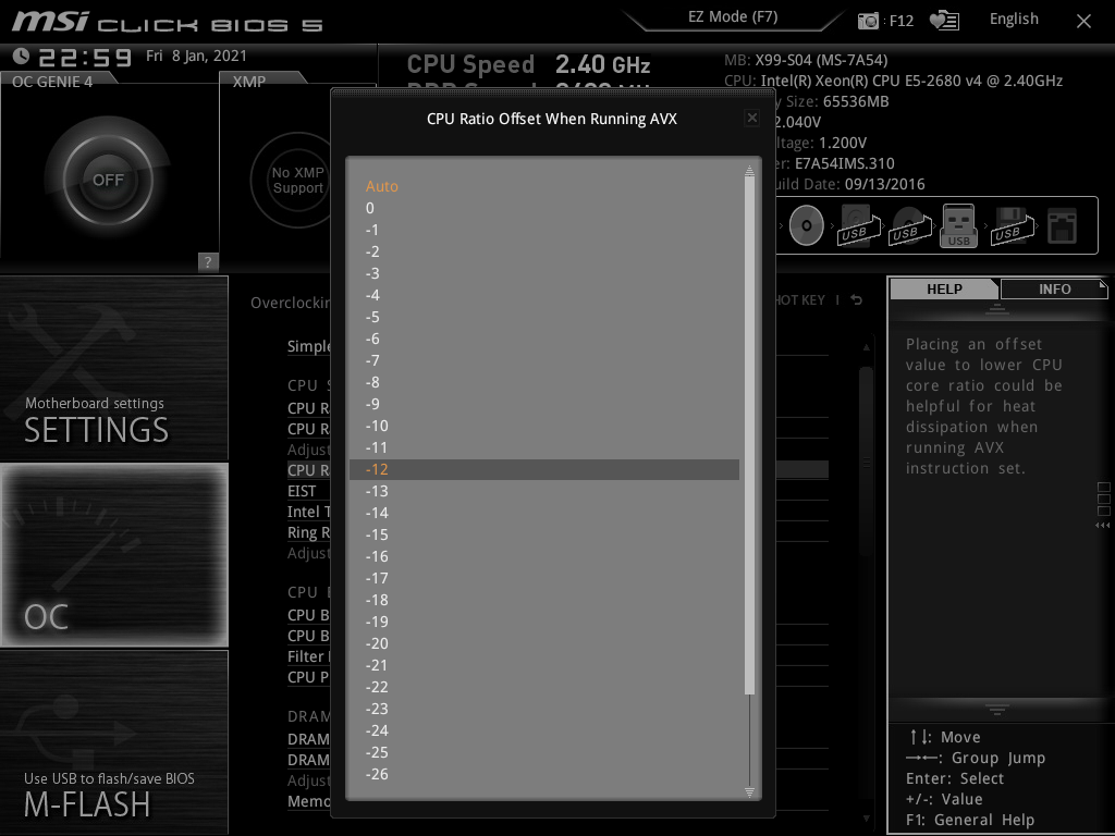 Также обнаружилась другая нелепая особенность. Вроде как можно выставить AVX Offset.