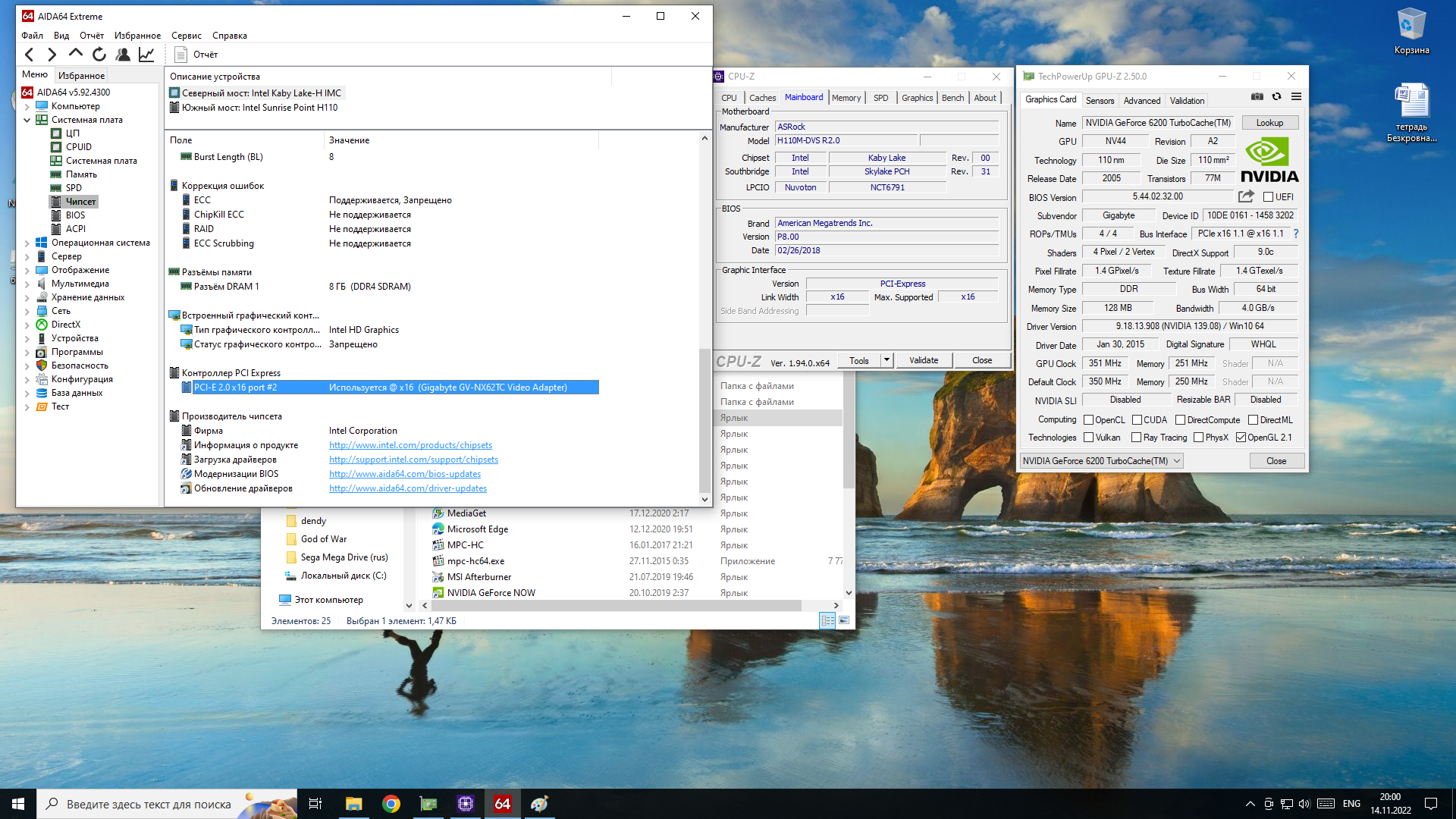 Комментарий к файлу: вот что показывает аида со вставленной картой и со старой тоже работает psi e x16 6200-2.png [ 1.29 МБ | Просмотров: 1088 ]