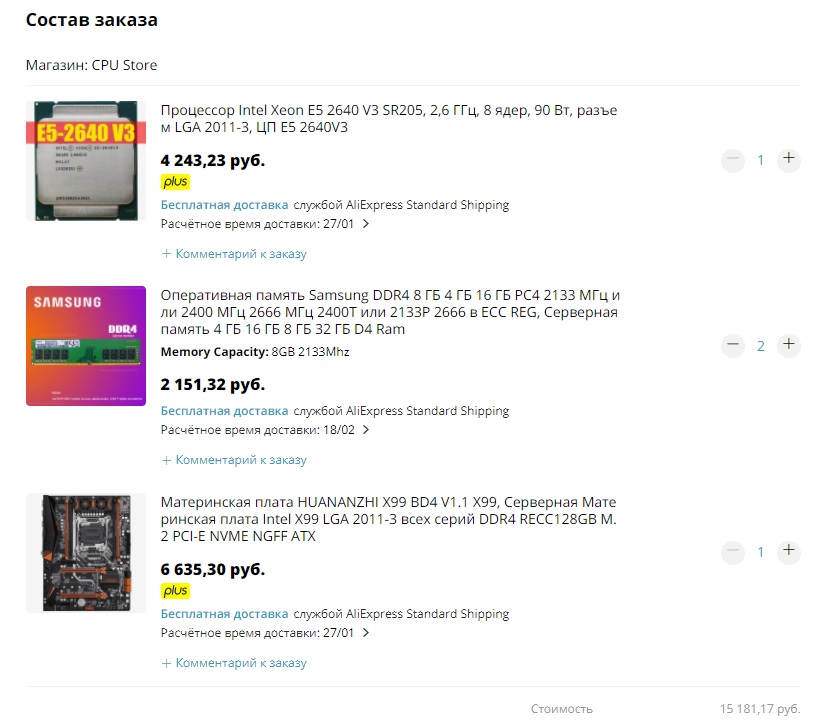 Здравствуйте! Оцените сборку, нормально за такие деньги? Процессор Intel Xeon E5 2640v3+Samsung DDR4 8GB 2133Mhz ECC REG*2+Материнская плата HUANANZHI X99 BD4,с купонами получиться где то 13 750 руб. Сомневаюсь в материнской плате, за такие деньги можно взять Atermiter X99 rev. 1.31