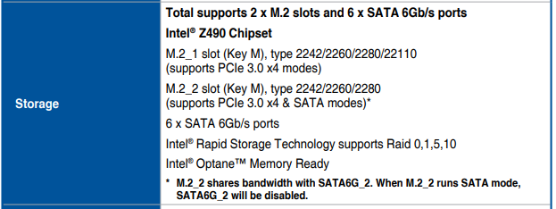 Всем привет. Приобрел плату asus z490-g gaming wifi и так же было два сата ссд м2 (мх500), попробовал их поставить, но после чего ссд в первом слоту вообще не распознается в биосе, хотя светодиод на ссд горит а значит как минимум питание идет. Начал читать гугл, после чего в мануале нашел интересующий меня пункт и как оказалось (это для меня было открытием), что первый слот м2 рассчитан только под установку nvme ссд.