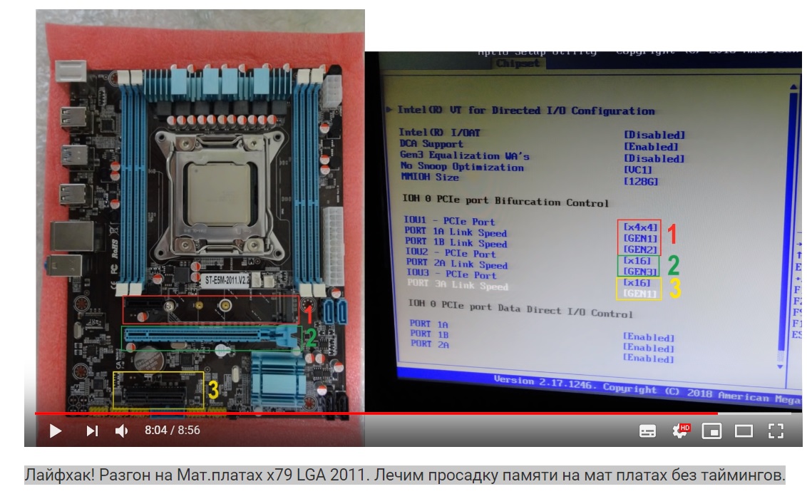 выставь везде GEN2, кроме порта где видеокарта верхний слот x16 на JINGSHA X79-P3 это PORT 3A первый x16 по середине(никаким радиаторам не мешает,-для паникера с youtube)
