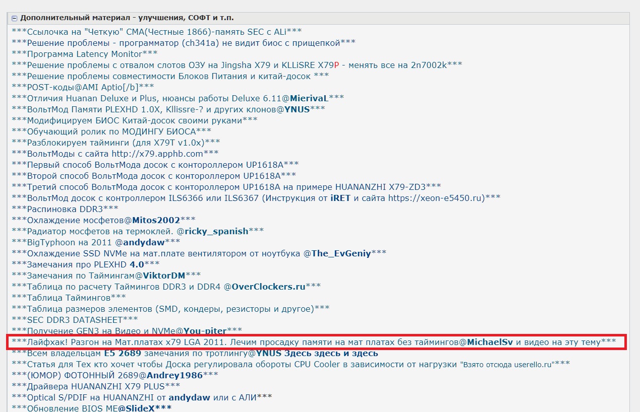 # Модель HUBа распаянного на мат плате - указано в БИОС# Дата БИОСА# Особенности доски# Изменение цвета# Работающие каналы памяти# Все такое прочее