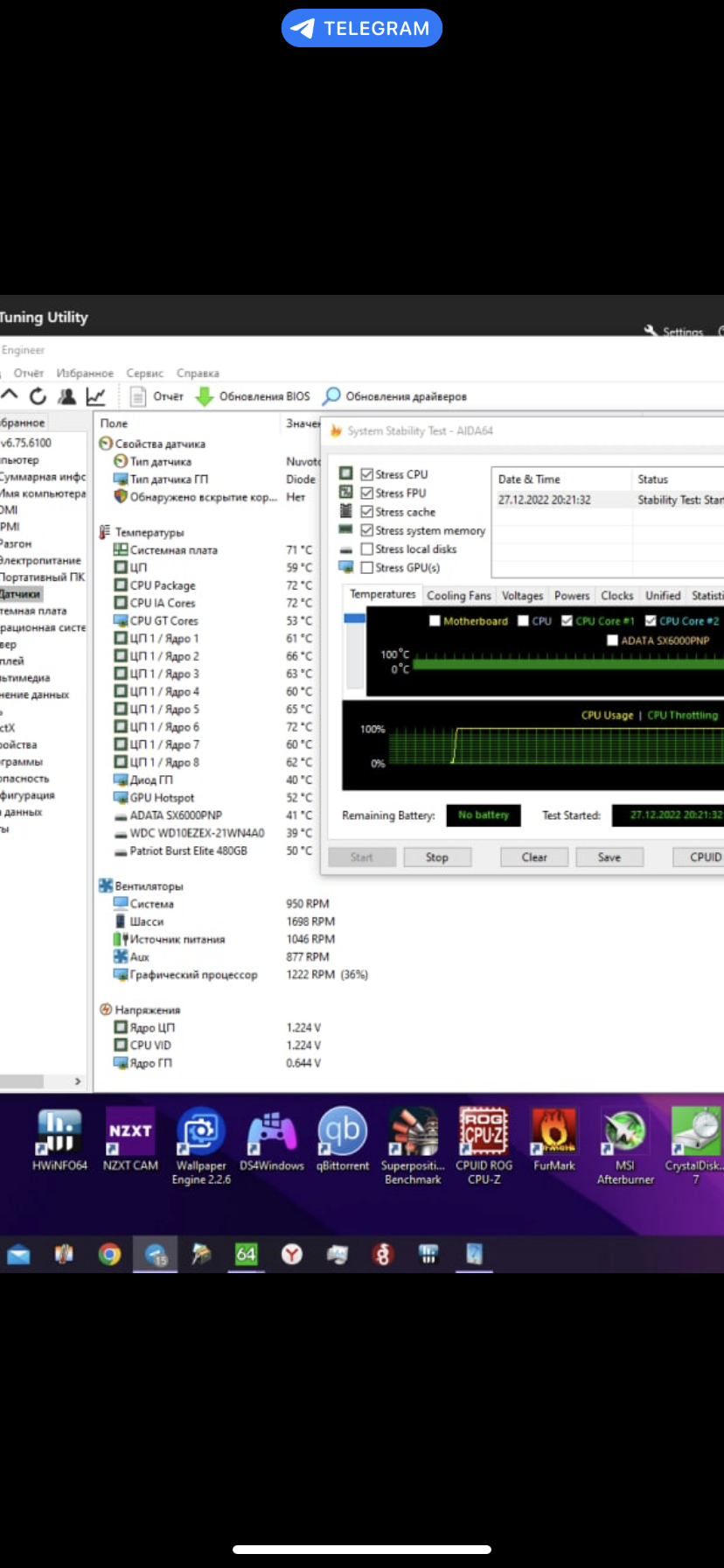 Обязательно проверьте показатели всех напряжений и протестируйте стабильность системы и температуры в стресс-тестах, играх и бенчмарках.