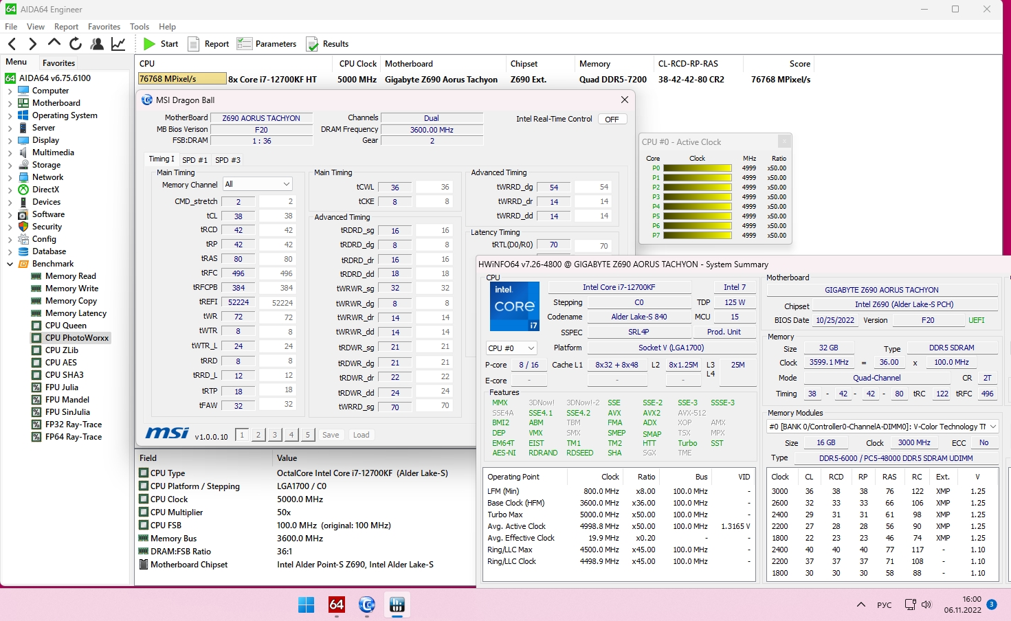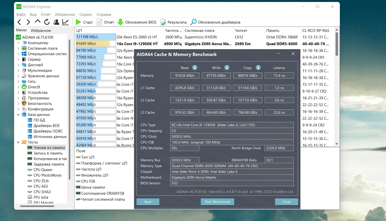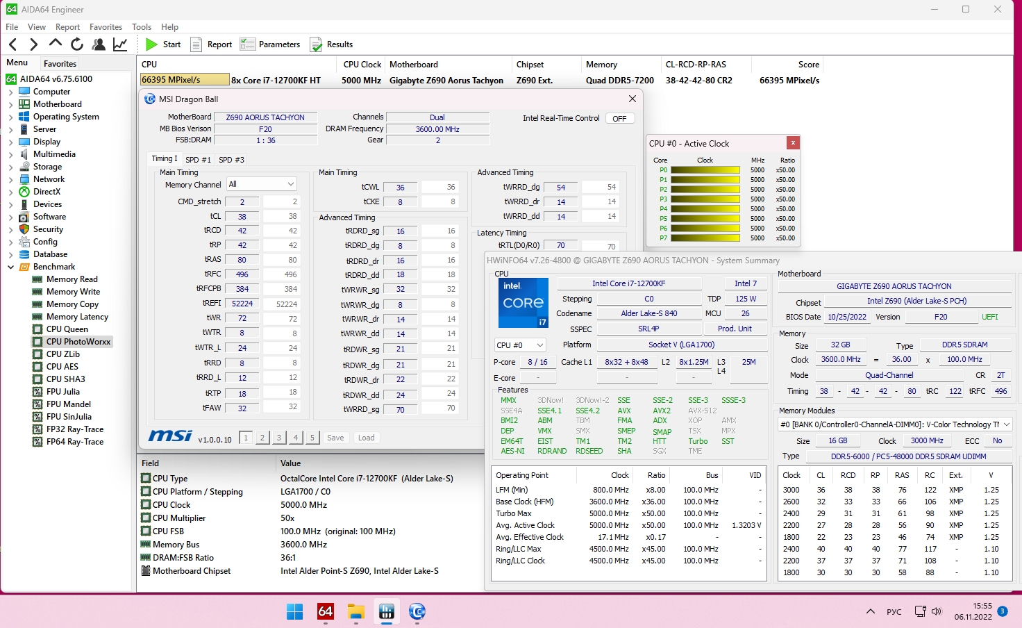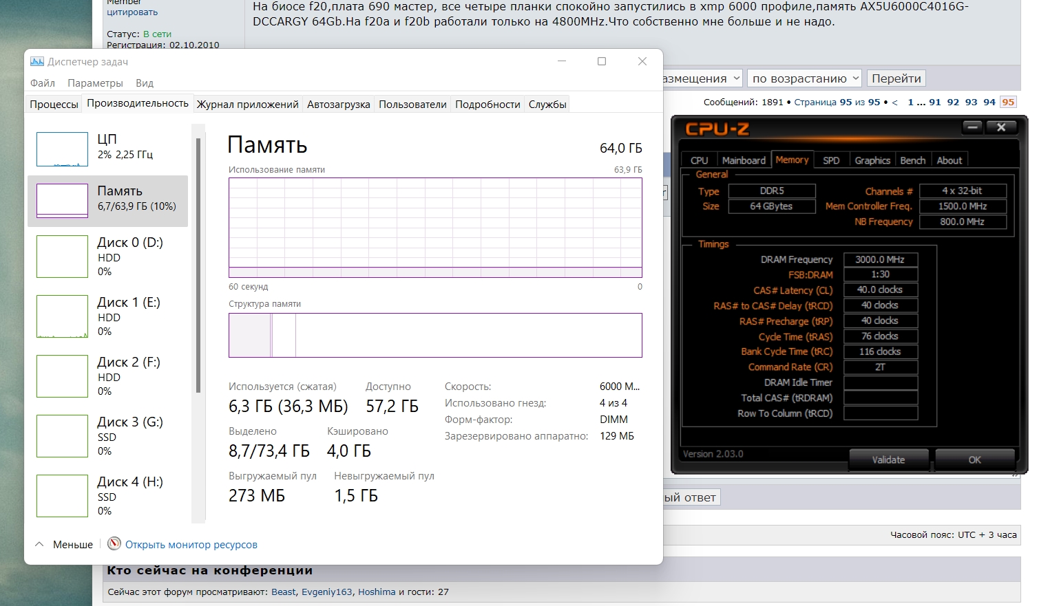 разгон не мой, модули G-Skill DDR5-7200 на Hynix A-Die, мой последний результат на Мастере с Кингстонами 4800 Hynix M-Die - 6600 стабильных на F20a, пока не продал ее.