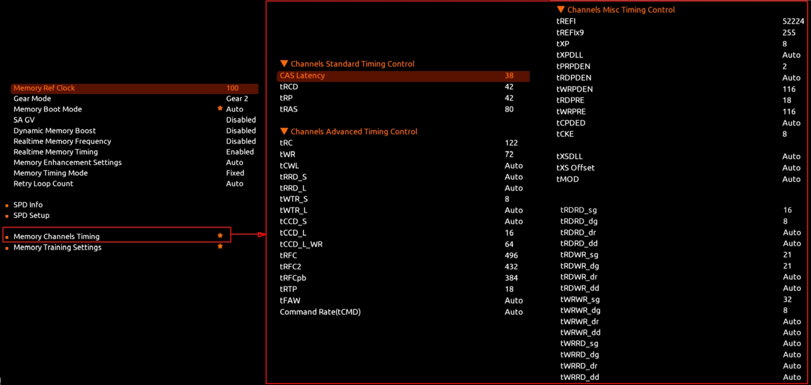 только tRFC'Ы=>624-576-512 поставьте и снижать только когда устаканитесь по всем другим таймингам. + пробовать 133 вместо 100 + пробовать Vdd2(1.36v) < VDDQ(1.39v), в районе 20-30 мВ DDR-5 на платформе Intel. Статистика разгона, советы, обсуждение результатов. #17818604 + вариация DDR-5 на платформе Intel. Статистика разгона, советы, обсуждение результатов. #17797072 с Memory Training : - SenseAmp Offset Training OFF - DIMM ODT Training ON - Write Drive Strength/Eq 2D ON - DIMM DFE Training ON или вообще всё включить, скоко их там есть(штук 50) но как видим ниже↓ на примере Z690 AORUS MASTER'а(правда на 13 серии+Хиникс(A-die)) можно и в духе 38-48, + прочего побольше накинуть и попытать счастья.