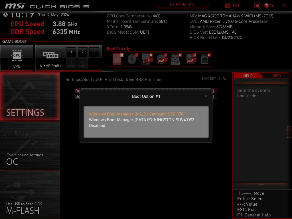 а вот тут где выбор загрузки отображается только одим M2