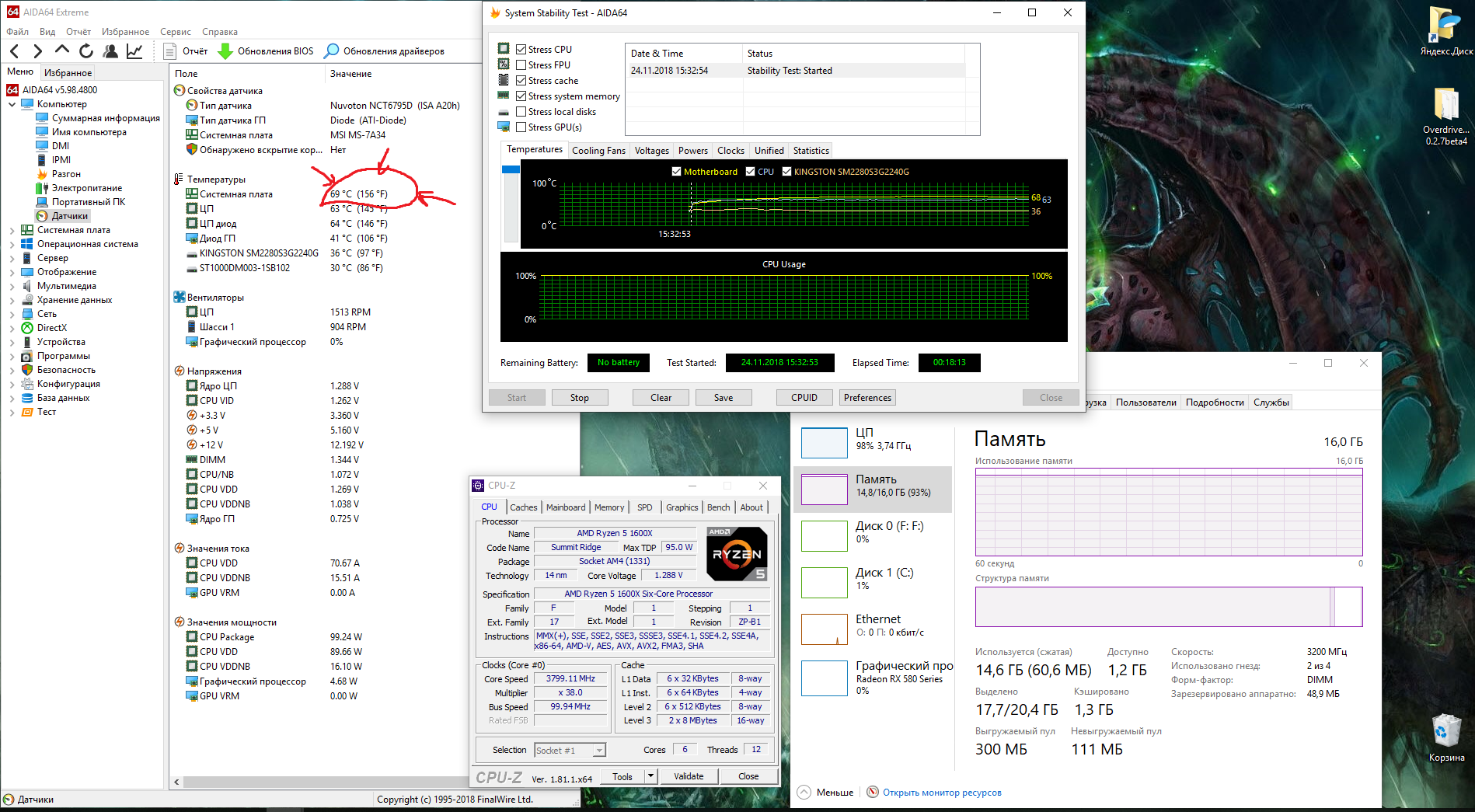 угадайте у какого из компонентов самыя высокая температура? Через 10 сек после остановки стресс теста температура падает на 10 градусов, а все остальные к температурам в простое. HWinfo показывает тоже самое.