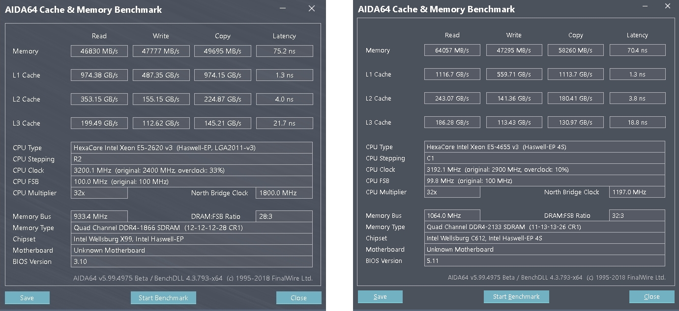 Да дело не в кэше. У Вас на скрине результаты нормальные! У 2620v3 скорость чтения для памяти DDR4-1866 МГц и не ужатых таймингах 46830 МБ/c, а в видео от технопланеты для памяти DDR4-2133 МГц и с ужатыми таймингами скорость 35857 МБ/c - https://youtu.be/U21gBA7l9vA?t=231. Вот что меня и удивило. А мне тут студенты рассказывают про сильную зависимость скорости чтения от количества ядер.