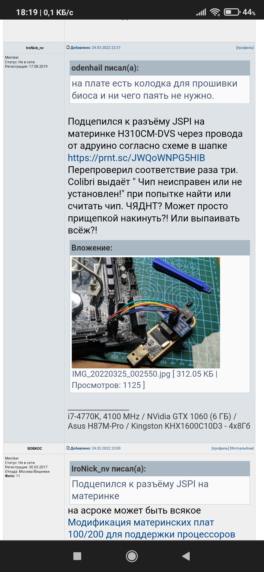 прищепкой программатором через neoprogrammer. Так дело в том, что с ОЗУ в первом слоте (её не доставал даже) ПК стартует без проблем. Вторую планку пока отложил, ничего не делал с ней