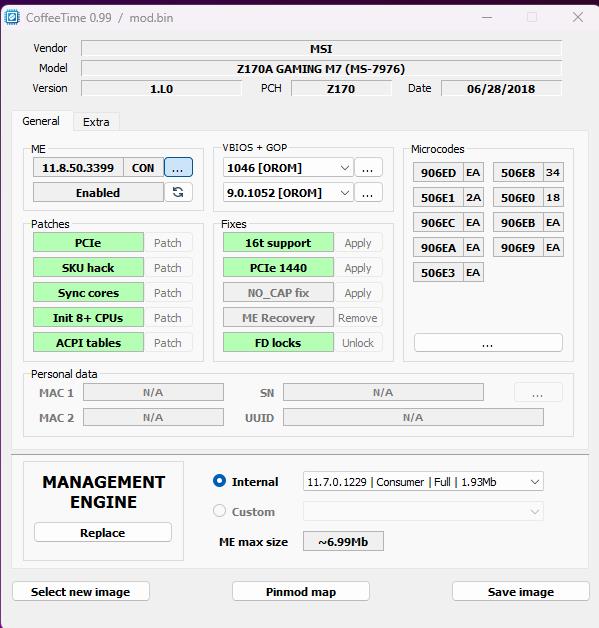 msi z170a gaming m7 реально ли заставить нормально работать с i7 8700k - i9 9900k? coffee time 0.99 вроде бы не ругается, модифицирует биос нормально мать с U0 процессором не стартует - включается и сразу выключается. может быть в биосе что-то не так модифицировал? i3 6100 нормально работает