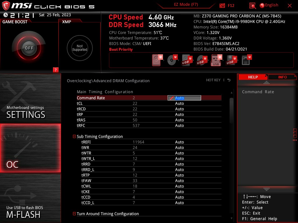 Изначально ставил частоту на 4.3 ГГц при базовом вольтаже (т.к. в разгоне не шарю особо), при СО "Cooler Master Hyper 212 LED". В стрессах температуры естественно были здоровые(примерно 85-90 градусов), но почему-то при работе с виртуальными тачками - вылетал BSOD(Конкретно в VMWare) и помогало только убрать частоту цп в авто. Память конечно не заводилась даже на 2900 МГц, поэтому полгода сидел на 2600. Частоту проца выставил по дефолту, ибо турбобуста спокойно хватало. НО!!! Заметил такую вещь интересную. Если на проце разгона вообще нет, только включенный турбобуст, то память спокойно заводилась даже на 3400, но винда естественно даже и не хотела грузиться ибо ОЗУ не вывозила. В итоге денёк потестив, оставил я частоту 3066 МГц и так сидел до сегодняшнего дня.