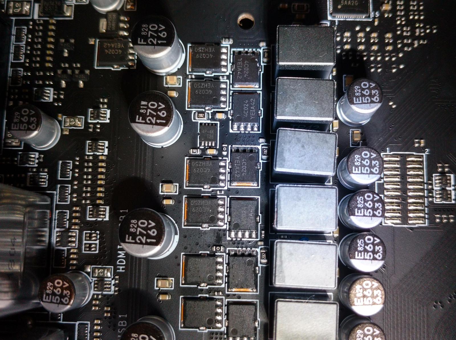 Не раз всплывали вопросы про MSI Gaming Pro X470, в частности по VRM. Пока переставлял кулер, снял радиатор, и посмотрел что да как, VRM один в один с x470 Gaming Plus, B450 Gaming Pro Carbon, 4 (усиленные?) на VSOC и 2 на SOC, 4С024 и 4C029 от OnSemi, и контроллер RT8894A. Собственно и от B450 Tomahawk и ему подобных не далеко ушел, а ввиду малых низких радиаторов, температуры мосфетов не радуют. Но под R7 1700 который один черт не берет 3.9, а на 38.5 voltage 1.32, его вполне хватает.