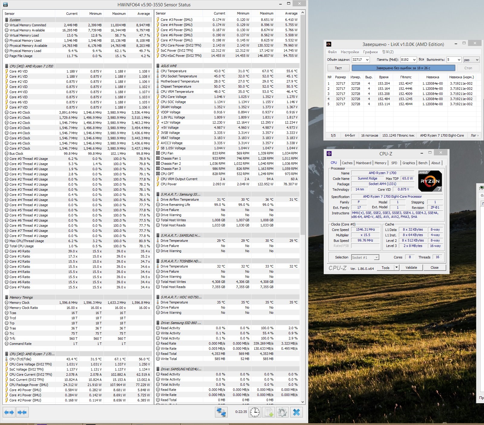 R7 1700 на 3900 МГц, ОЗУ 3200 МГц. БИОС 6302.