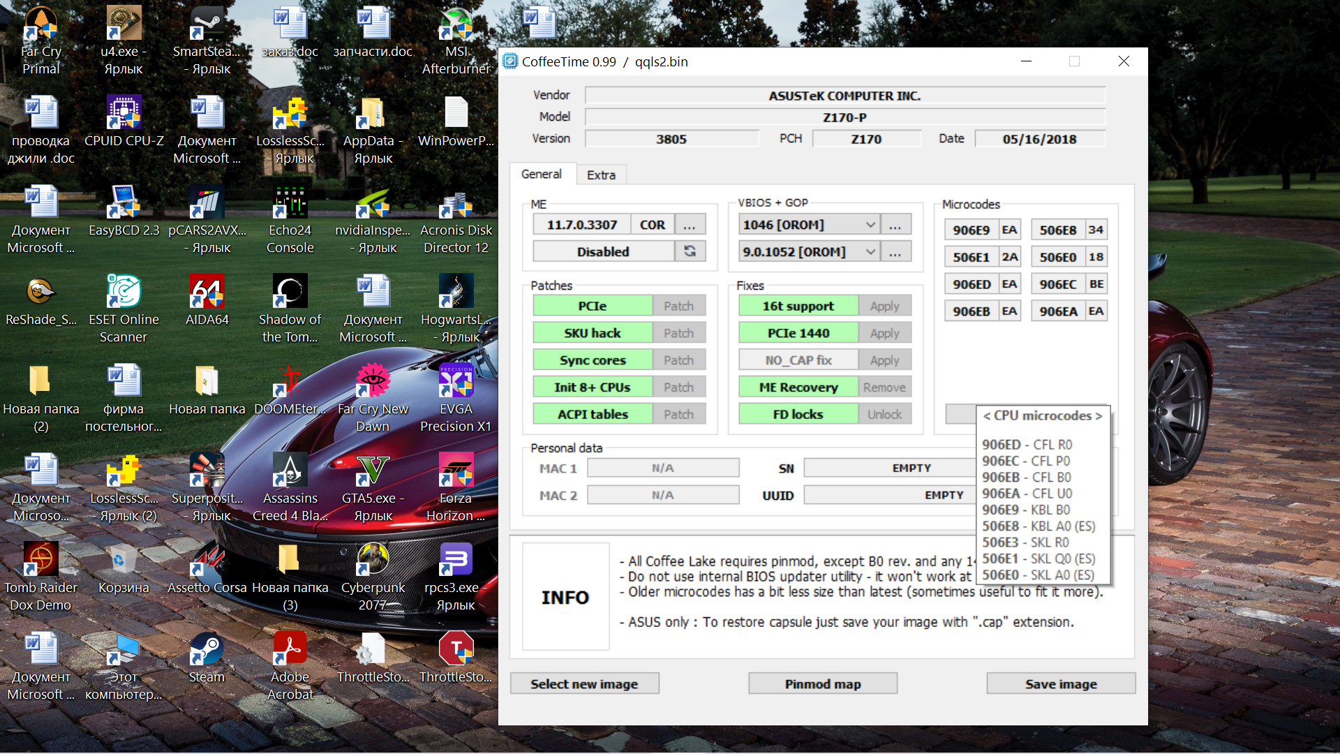 На модифицированных биосах по-прежнему будут работать серийные Skylake и Kaby Lake, если оставить их микрокоды (506E3 и 906E9 соответственно).