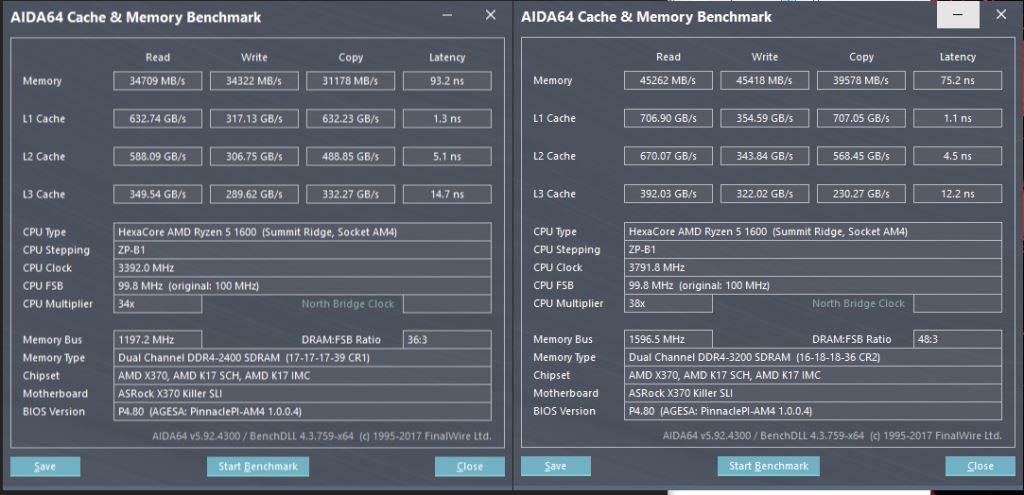И заметил одну особенность: в тесте AIDA cashe & memory при 3200МГц все показатели (память 82ns L1 - 1.4ns, L2 - 4.9ns, L3 - 14.3, скорости тоже плохие) намного ниже, чем в режиме 3133МГц (память 45GB/74ns L1 - 1.1ns, L2 - 4.7ns, L3 - 12.1ns)...может это из-за того что на 3200 система не стабильна?