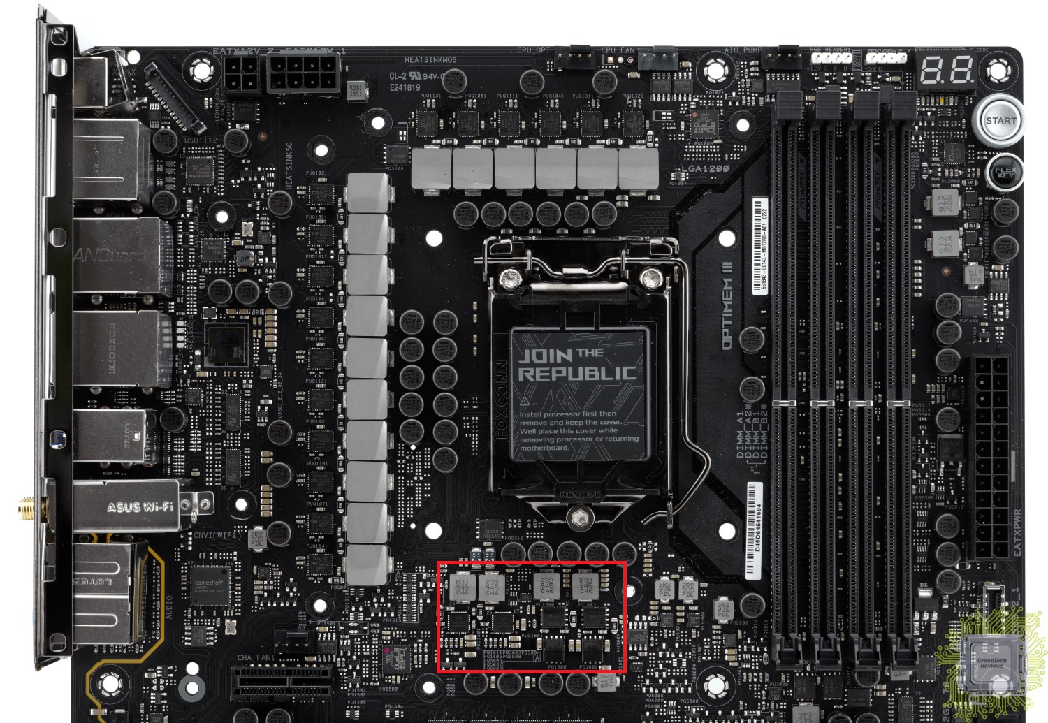 ROG STRIX Z490-E - 7*2+2. И ещё 2+2 для VCCIO и VCCSA. ROG STRIX Z490-A - 6*2+2. И ещё 2+2 для VCCIO и VCCSA. Prime Z390-A - 6*2+2. И ещё 2+2 для VCCIO и VCCSA. Prime Z390-P - 5*2+1. И ещё 1+1 для VCCIO и VCCSA. 12 фаз под радиаторами, 1 ниже сокета. Prime Z390M-Plus - 8+1. И ещё 1+1 для VCCIO и VCCSA. 10 фаз под радиаторами, 1 ниже сокета.