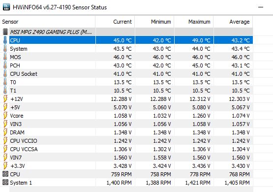 На моей картинке сравнивались датчики платы Z490i unify. Возможно у вас по другому. По ходу обновлений hwifo датчики и их имена должны стать читаемыми.