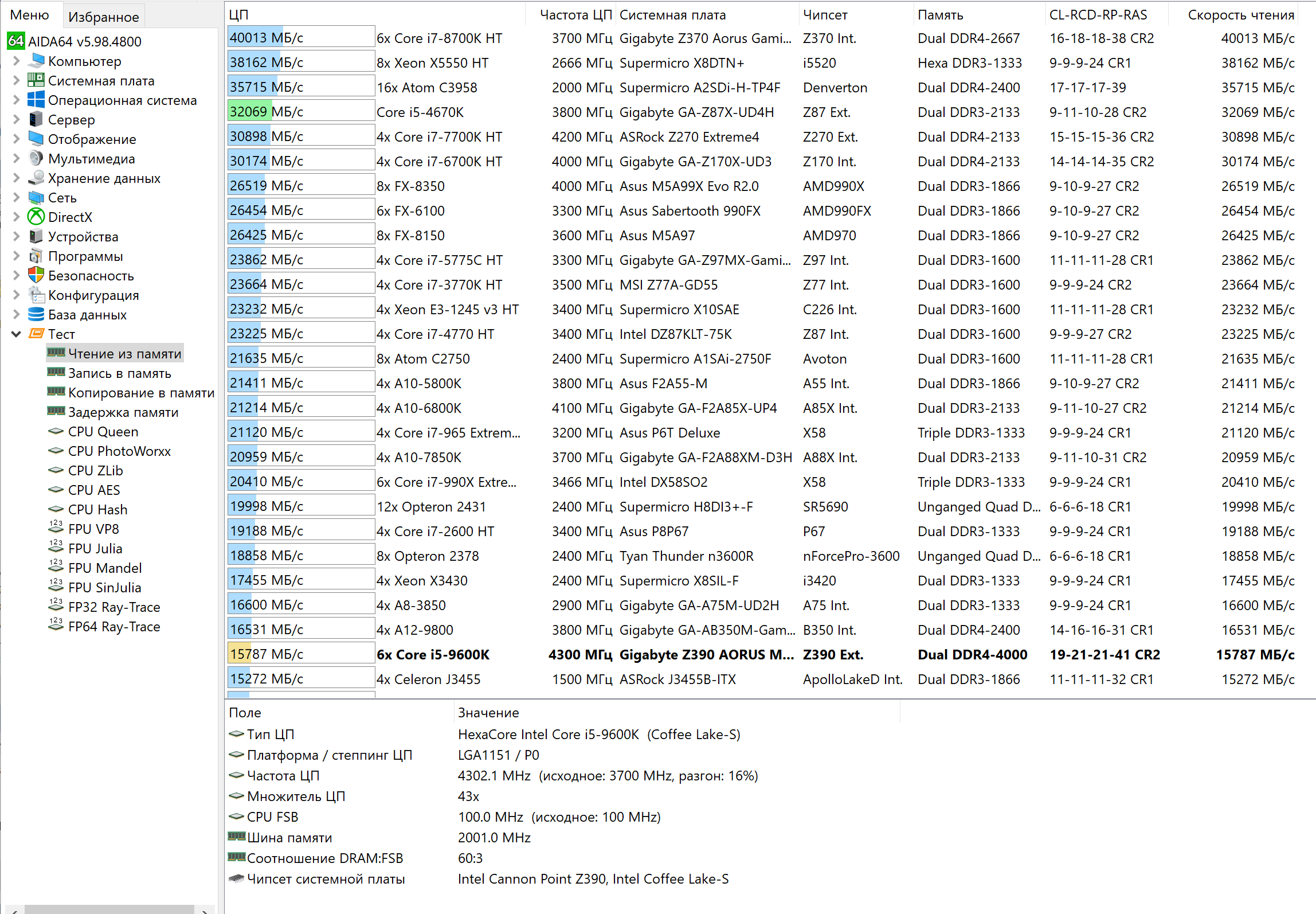 Привет, форумчане. Приобрел z390 Aorus Master с 2 планками по 8 Gb Patriot Viper RGB 4133 MHz. Bios пока не трогал, версия F4, планки поставил в A1, B1. Включил профиль XMP, захожу в Aida 64 прогнать тесты - на чтение и память почему-то получилось в 2 раза ниже, чем у меня было на G.Skill Ripjaws 2133 MHz на z87-UD4 - 14-15 тыщ Мб/с сейчас против 30-32 тыщ Мб/с на DDR3. Что не так и как с этим бороться?