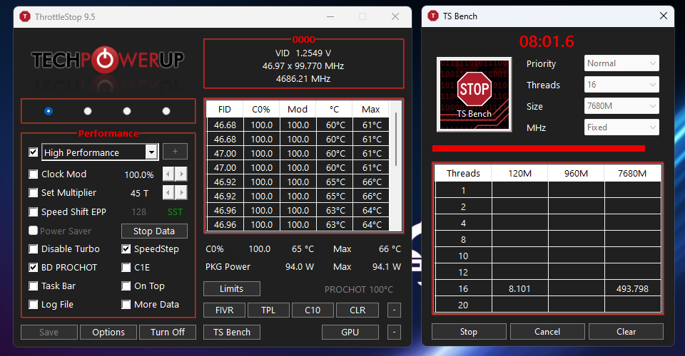 Производительность P-ядер ADL при одной и той же частоте заметно выше, чем производительность ядер TGL. Так что если мы возьмём задачу, постоянно полностью загружающую все ядра процессора, то получим примерно одинаковые суммарные показатели производительности для обеих архитектур. Здесь у нас несколько дней назад rvspost показывал пример работы ADL с 6 P-ядрами.