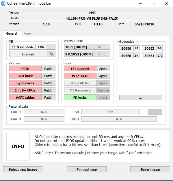 CoffeeTime 0.92 [ Я.Диск ][ Mega ] Автор: svarmod Эта версия не содержит автомодификации, все изменения в биосе проводятся "вручную"; предоставляется без каких-либо подсказок, с GUI, новыми фишками и прочими удобствами. Больше информации о новой версии на [ Страница 407 ]