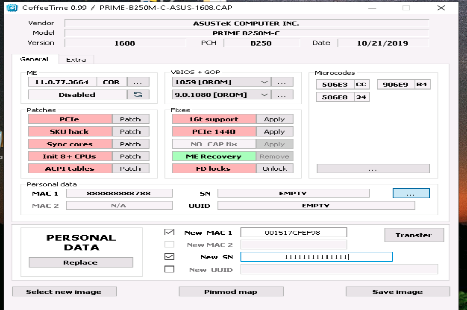 Если ли мак и sn липовие ставить? Реально прошить биос без программатора только замкнув ножки? для реалтек alc887 и alc888 отличается инструкция? Обязательно микрокод трогать смотрю если добавить кебилейк и скайлейк то они будут отличатся от заводских скайлейк? на данний момент скайлейк за 32$ ксеон можно на али взять, а кофилейк 190$ думаю коффи пока не актуально.