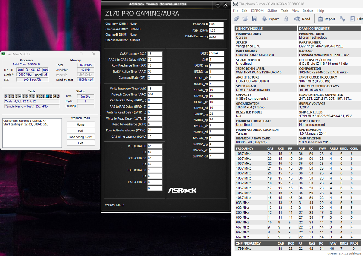 Успешно подружил QTJ1 в паре с MSI B150 Gaming M3. Стабильно держит 4.6ГГц по всем ядрам. Память выше 2266CL15 не погналась ни в какие ворота. Для точного осознания в том, что дело в процессоре, приобрёл набор памяти G.Skill Ripjaws V 4266Mhz. Понятное дело, что на такой частоте они не заработают в паре с мутантом, но на 2600 рассчитывать было можно. Увы, ожидания не оправдались. Так же добавил поддержку ReBAR с помощью модуля ReBarDxe. После применения в играх забавно стал загружаться процессор. Потоки с 10 по 16 перестали загружаться от слова "совсем". Производительность при этом осталась на прежнем уровне. Вполне вероятно это я что-то не понимаю и это ожидаемый результат. При этом в Cinebench R23 все ядра работают и в Multi-Core удаётся набрать честные 10700 "попугаев". Биос для модификации использовал тот, который выслал китаец при отправке процессора. https://drive.google.com/file/d/1CcbKBg ... sp=sharing Если ссылка побьётся - пожалуйста сообщите, перезалью. Если кто-то знает, в чём может быть проблема касательно памяти, прошу помочь. В остальном, всем огромное спасибо за тему и обсуждения. Не раз приходилось обращаться) Данная плата вскоре пойдёт в родительский компьютер вместе с прошлым i5-7500, а я себе на замену приобрёл Z370 Gaming M5. Как только появится опыт эксплуатации, обязательно поделюсь здесь