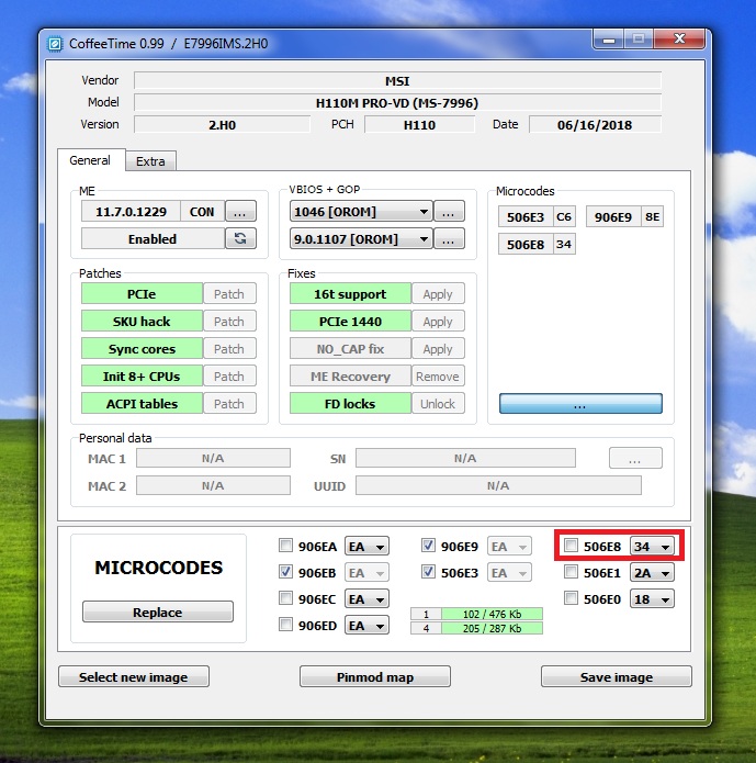 Rm76 скачал свой биос? Открой кофетаймом и проставь как у меня на скрине, это будет модификация биоса под процессоры скайлейка, кэбилейка и кофелейка В0