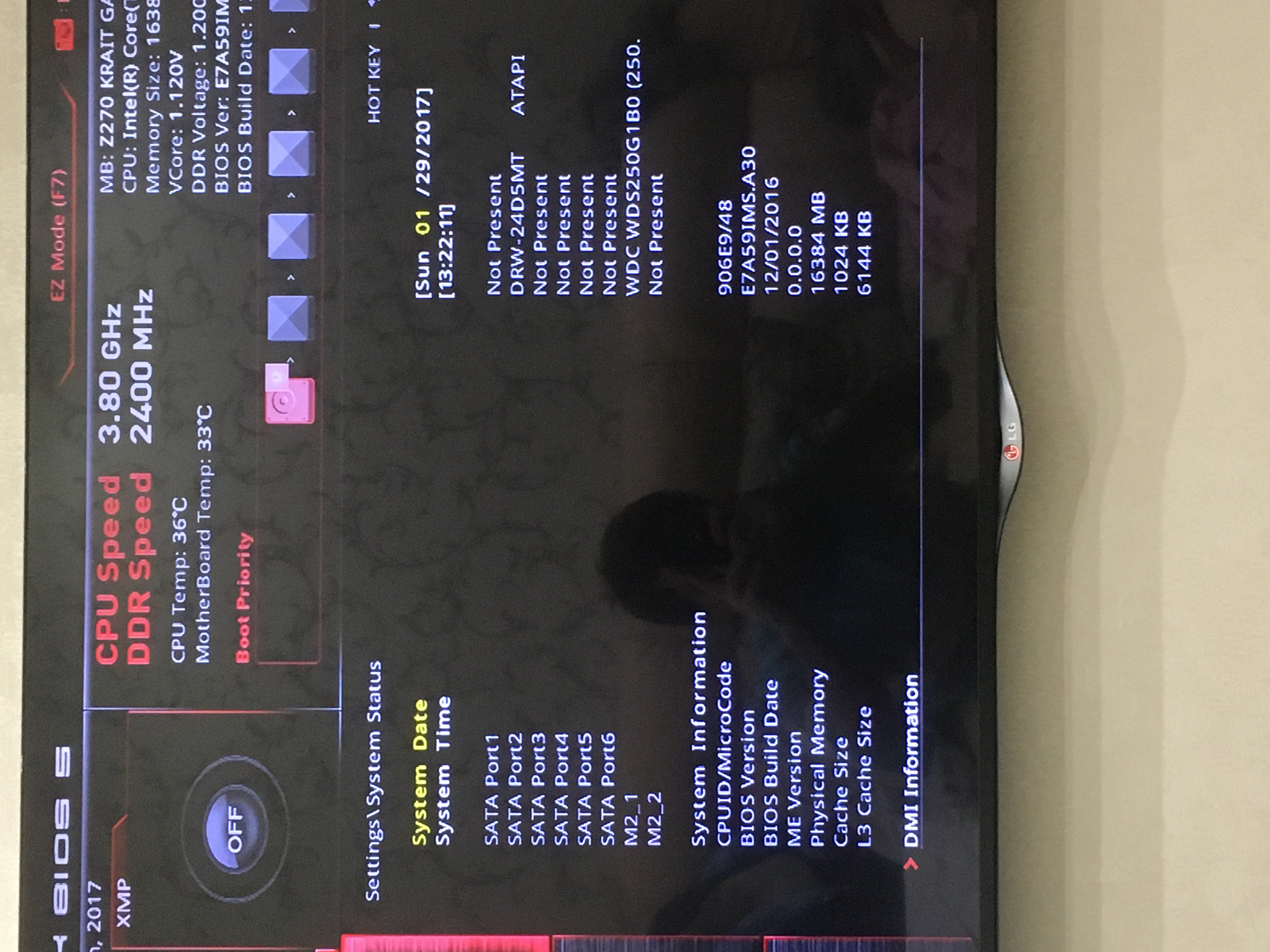 Продолжение истории. Получил деньги за плату. Решил взять MSI Z270 KRAIT GAMING вместо SLI PLUS. Ок! Собрал, запускаю и... такая же фигня - ME FW of the system was found abnormal.... Прошил BIOS все равно ничего не изменилось - ошибка осталась. При последующих манипуляциях заметил следующую вещь. Если прошить BIOS и при первой загрузке не дожидаясь выпадения ошибки нажать DEL и войти в BIOS, то версия МЕ выдается нормальная. Ничего не меняю, выхожу без сохранения, жду загрузку и тут опять появляется ошибка. Захожу в BIOS и снова вижу 0.0.0.0 напротив версии МЕ.
