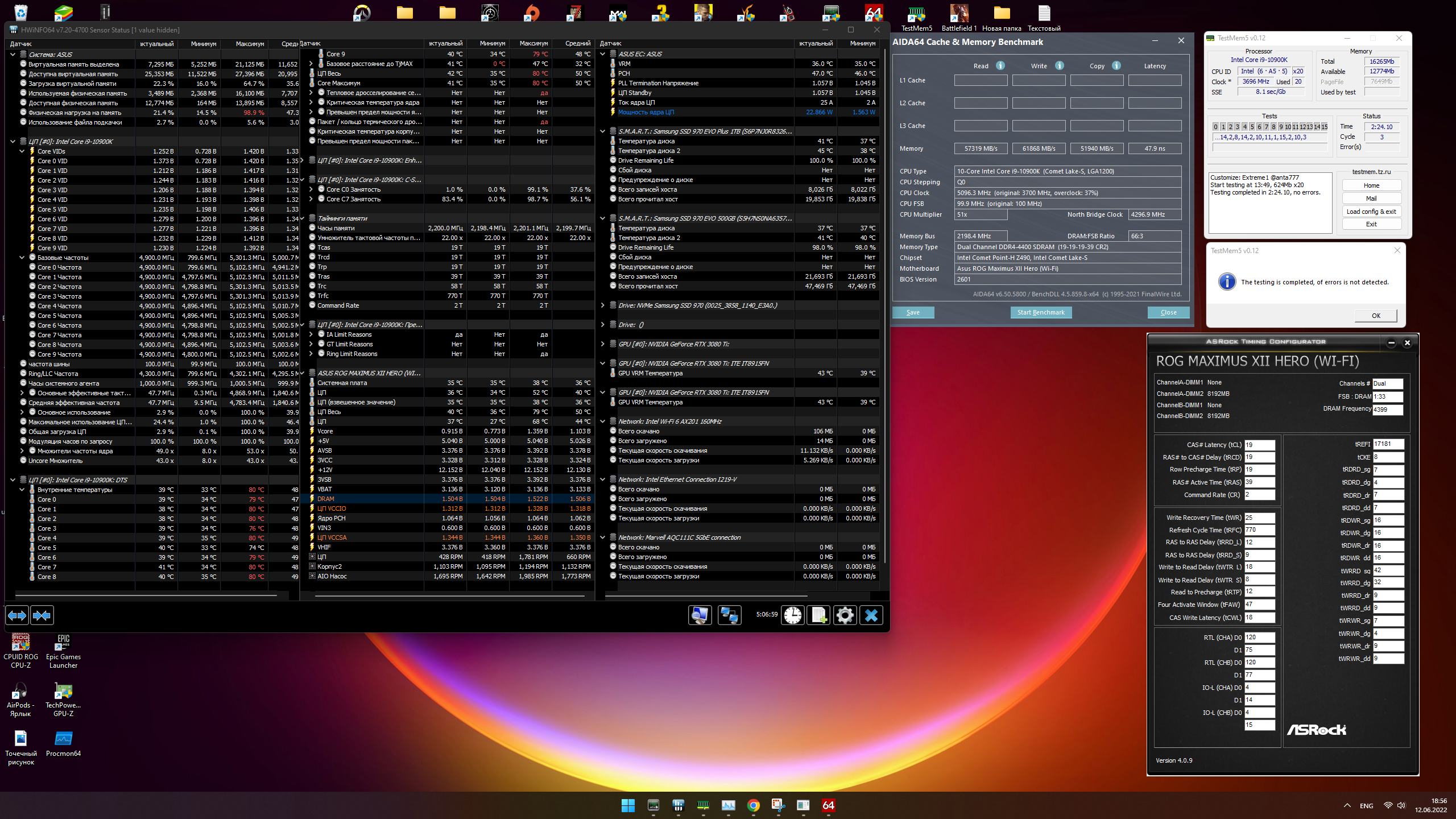 Подскажите безопасные настройки напряжений для 10900K и Maximus XII Hero (Wi-Fi). Установил по F1 в биос рекомендуемые лимиты, MCE отключил, VCore установил Manual 1.250В, VCCSA/VCCIO 1.200В для памяти 3600МГц 16-16-16-36, 1.35В. Memtest86 проходит без ошибок. Почему возникают ошибки кэша L0 в HWInfo ? Может низкое напряжение VCore ?