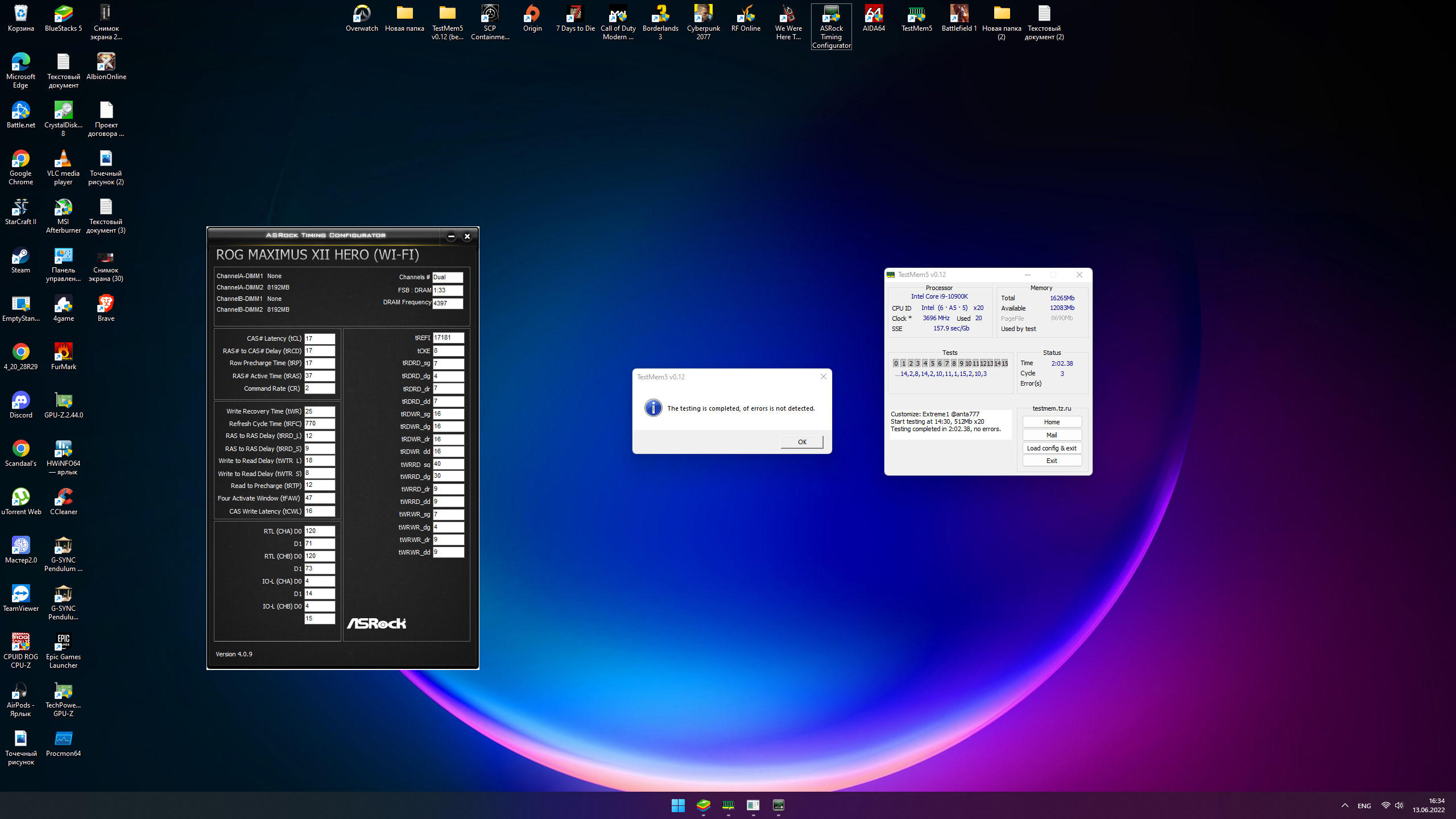 На maximus hero XII вышла новая версия биоса 2601, в которой улучшили совместимость памяти судя по описанию Удивительно, но у меня стоят patriot 2х8 4400 19-19-19-39, которые удавалось до сих пор разгонять только до 4200 cl 17-18-18-38, теперь заработали XMP настройки заявленные производителем, и удалось ужать и поднять частоту с таймингами 4400 cl 17-17-17-37, повысив напряжение до 1.5, вторички не успел поджать, но идут тяжело