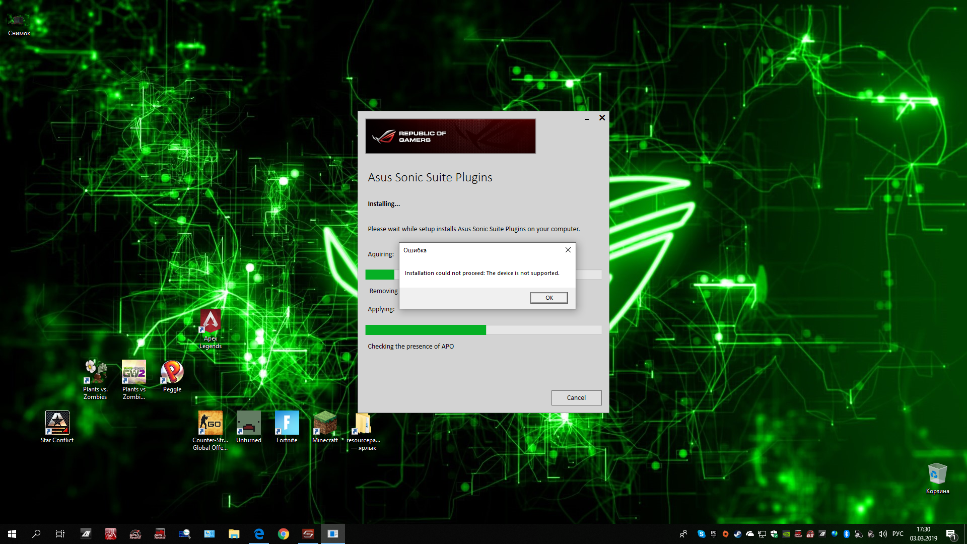 Добавлено спустя 1 минуту 56 секунд: Кто ни будь устанавливал Sonic Studio , Sonic Radar на нашу мать , на Windows 10 ? В драйверах он есть но при попытке установить пишет , что оборудование не обнаружено ... В тех. поддержке асуса написали , что плата не имеет полной поддержки win10 , ставьте более старую версию , а где ее нарыть старую версию win10 . Вот и вопрос : может кто знает решение данной проблемы ?
