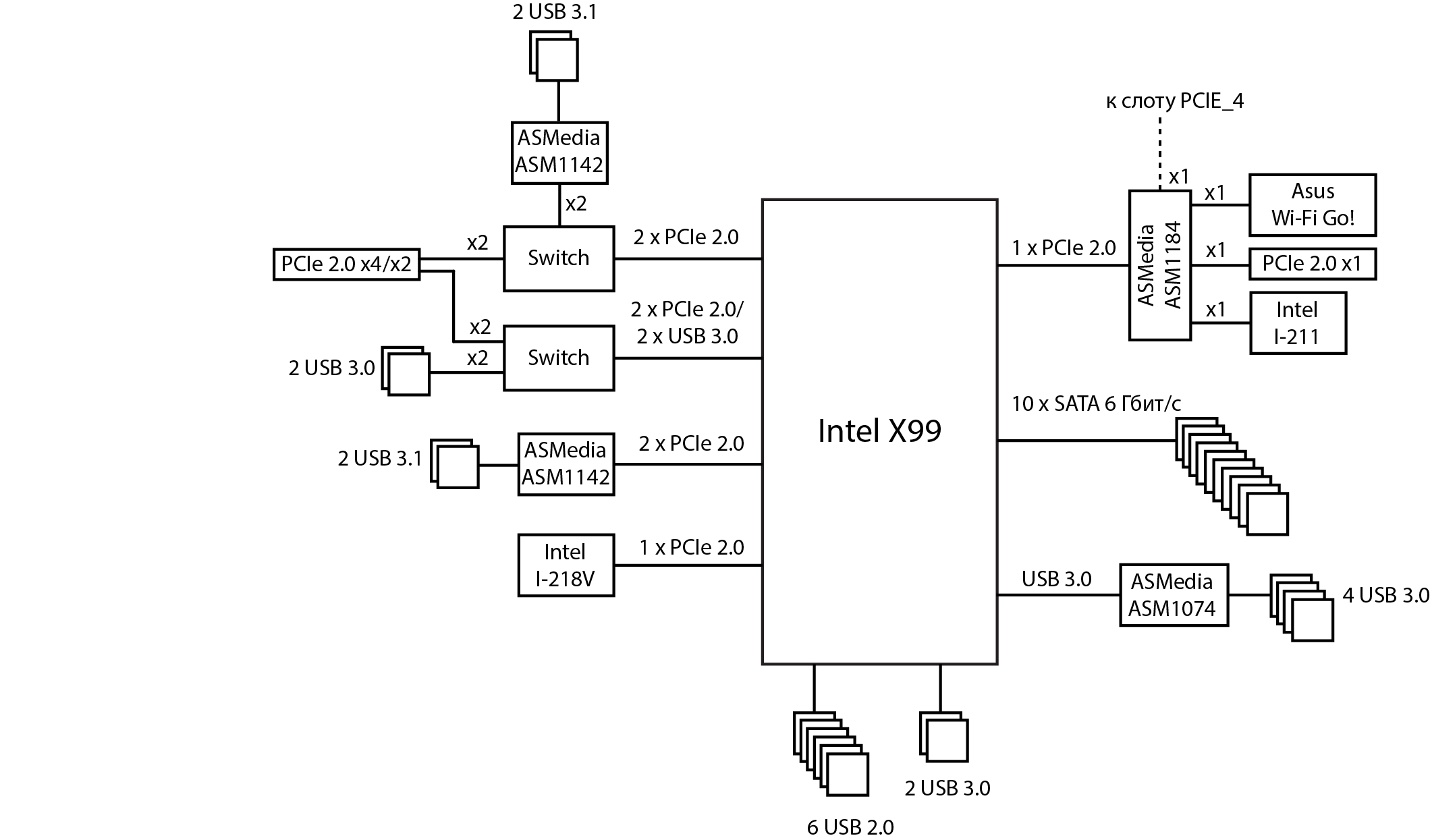 Добавлено спустя 4 минуты 29 секунд: Ну и 8 линий PCIe к котоорым могут быть подключены сторонние контроллеры и звук.
