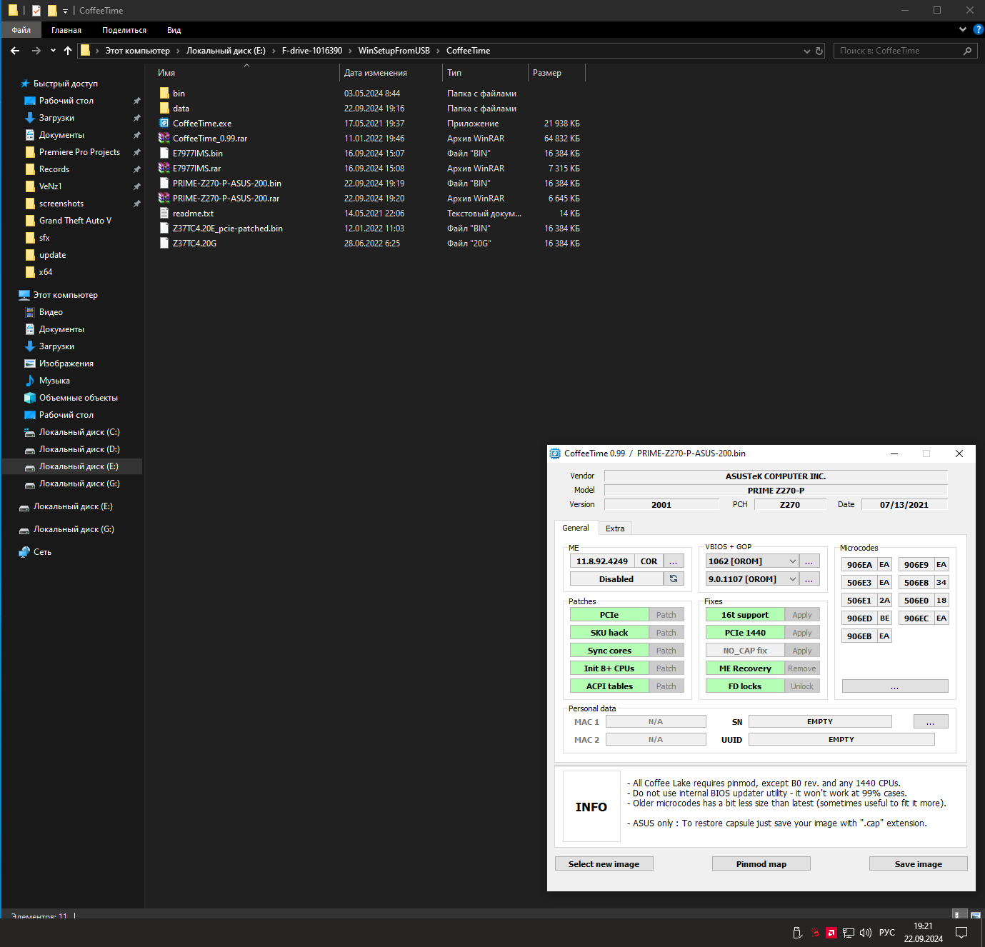 Для применения FB, флешку нужно отформатировать специальным образом: - Скачайте и запустите WinSetupFromUsb, вставьте в ПК флешку. - Установите в окне программы галочку «Fbinst Tool» и, выбрав формат FAT32, запустите форматирование кнопкой «GO». - Затем внимательно изучите раздел «USB BIOS Flashback» в инструкции к материнской плате. - Переименуйте согласно ему сохраненный в CoffeeTime файл с расширением .CAP (не забудьте подтвердить восстановление капсулы на последнем этапе модификации!). - Скопируйте переименованный файл в корень флешки. - Подключите к материнской плате 24-контактный разъем питания, вставьте флешку в разъем Flashback и нажмите находящуюся рядом кнопку прошивки. - Ожидайте окончания процесса прошивки: светодиод перестанет мигать. Если индикатор в какой-то момент стал гореть постоянно, то запись не удалась - попробуйте другую флешку. #77