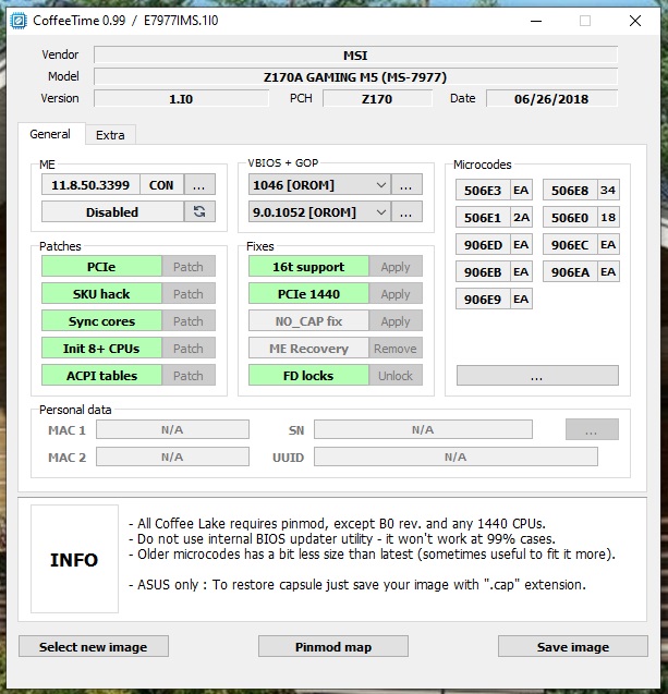 На модифицированных биосах по-прежнему будут работать серийные Skylake и Kaby Lake, если оставить их микрокоды (506E3 и 906E9 соответственно).
