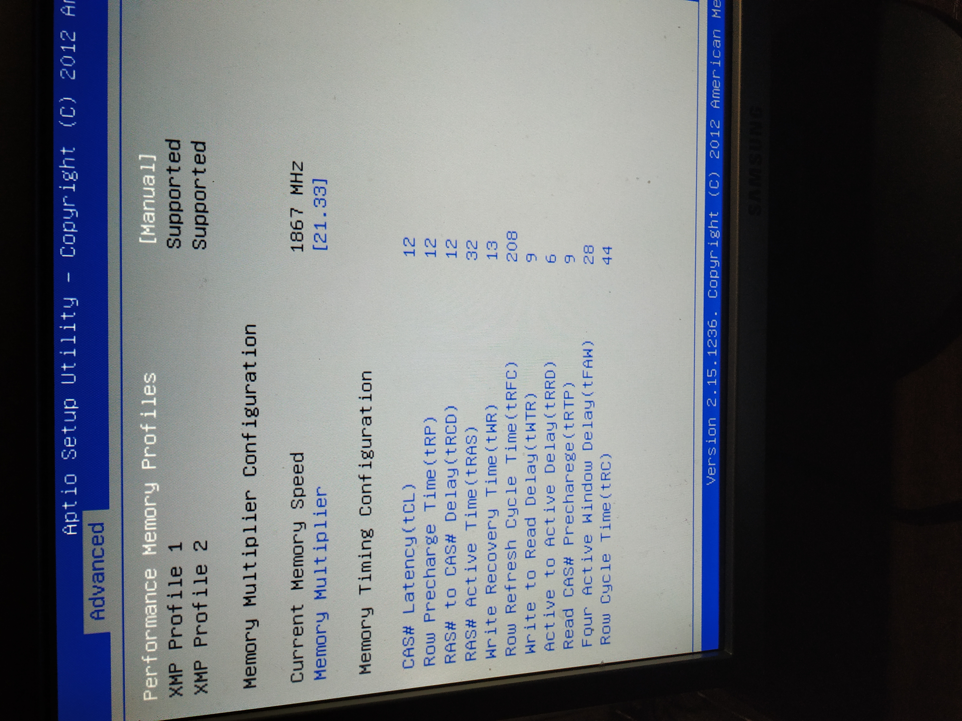 ну с таААакими таймингами на 2133 проблем(от таймингов) не должно быть ток tWR=tWTR+tRTP=18, а не 13 в твоём случае. А вообще: tRTP+tWTR=tWR в купе с tWR≥tCL и значениями tWR - 5,6,7,8,10,12,14,16; для простоты tWR=2xtRTP=2хtWTR ака tRTP=tWTR; tRAS≥tRCD+tCL+4; tFAW≥tRRD*4; tRC≥tRAS+tRP tWTR≥4,tRRD≥4, tWTR≥tRRD, ну а tRFC тем выше, чем частота выше + от ранговости зависит и чипов памяти + мега/гигабайтности их плашку составляющих + от напряжения на неё подаваемого, + от tRCD с tRP и лучше завысить до +-250, потом опускать в самую последнюю очередь, в первом приближении можно считать как: tRFC+-=8*(tRCD+tRP) или +-=8*tRAS