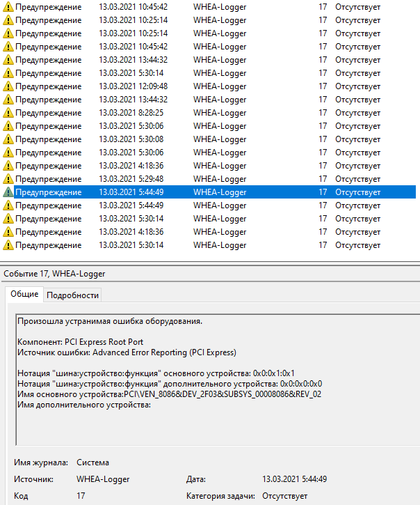 Господа-товарищи, всем привет! Недавно заметил, что в логи сруётся эвентом WHEA-Logger Error 17.