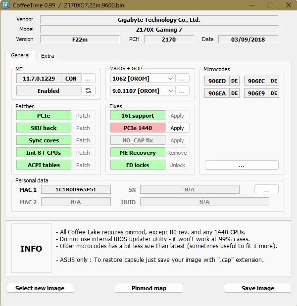 Привет, если можешь поделится файлом Биоса буду благодарен!, пока что сильно не горит плату переводить на Coffee Lake, может через месяц-другой почитал в пошаговой инструкции вложенной насчет пошивки через FPT, вроде все понятно, мне одно интересно, в случае неудачи ведь можно переключить на плате второй резервный Биос? смотрю что на gigabyte самый жирный пин-мод, если что попробую каптоновым скотчем изолировать контакты